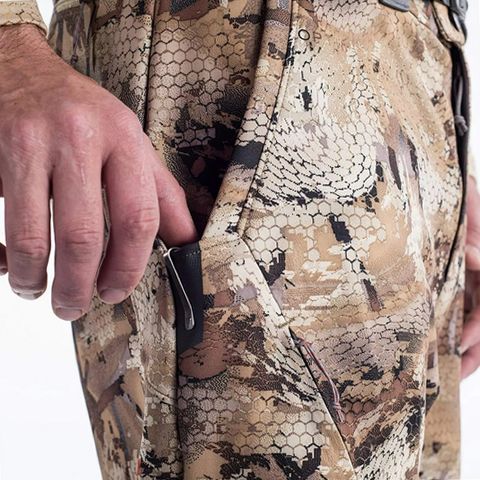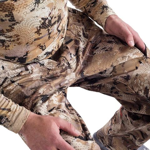 Featuring durable nylon construction, SITKA Grinder Pants serve up your go-to hunting pants you know you're in for a tough hunt. Integrated 4-way-stretch fabric and an articulated pattern let you move without feeling constricted. A durable water-repellent finish ensures moisture rolls off without pooling. The low-profile waist on these SITKA pants provides chafe- and pinch-free comfort. An abrasion-resistant knife sleeve lets you keep your trusty sidekick close at hand. Diagonal thigh zips let you dump heat fast, with easy access, even while seated. A rear zip pocket in the SITKA Grinder Pants stores small essentials, and an offset front button reduces bunching when you wear these SITKA pants under waders or bibs. Machine wash. Imported.
