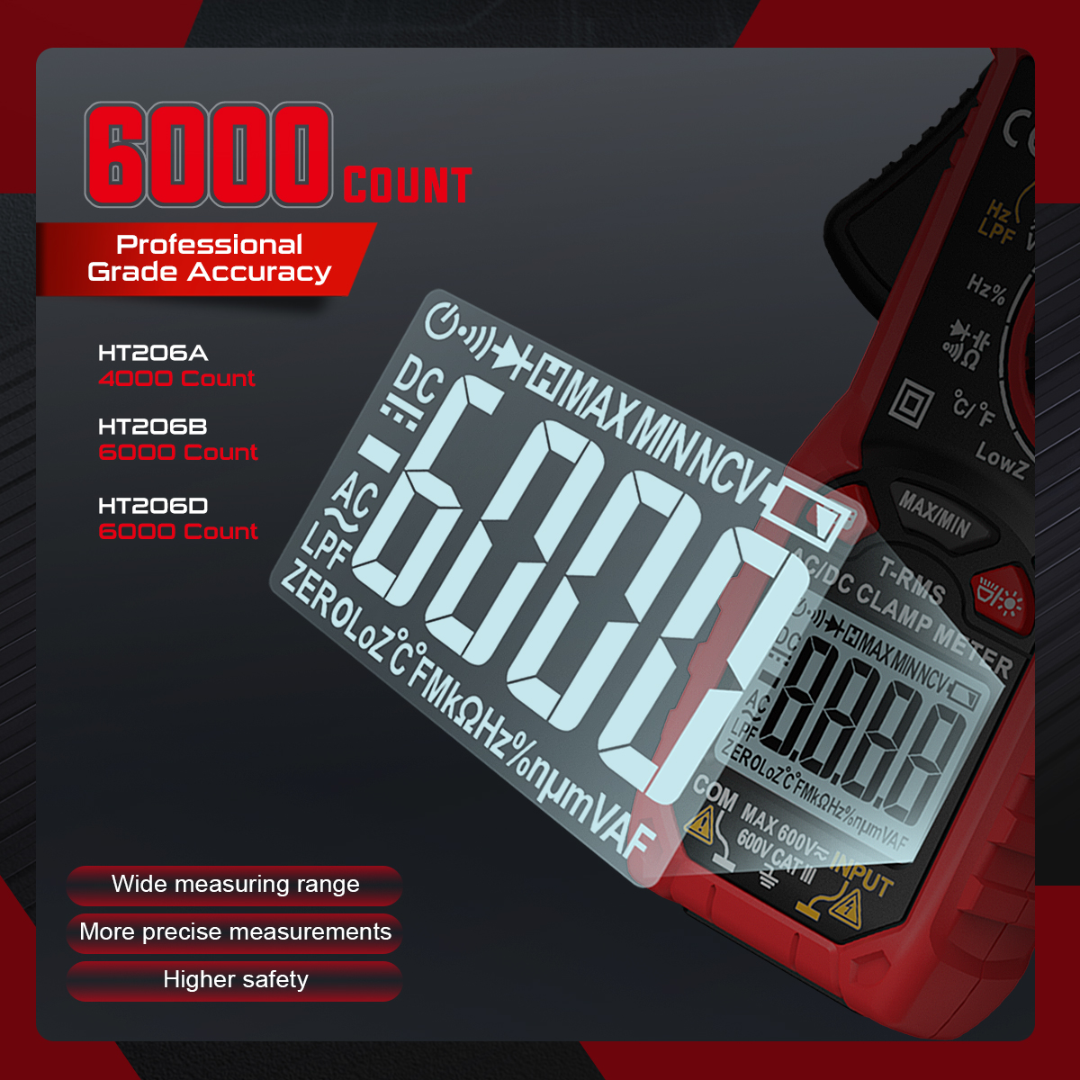 Max Count: 6000. Unit symbols are displayed automatically according to the measurement function range.