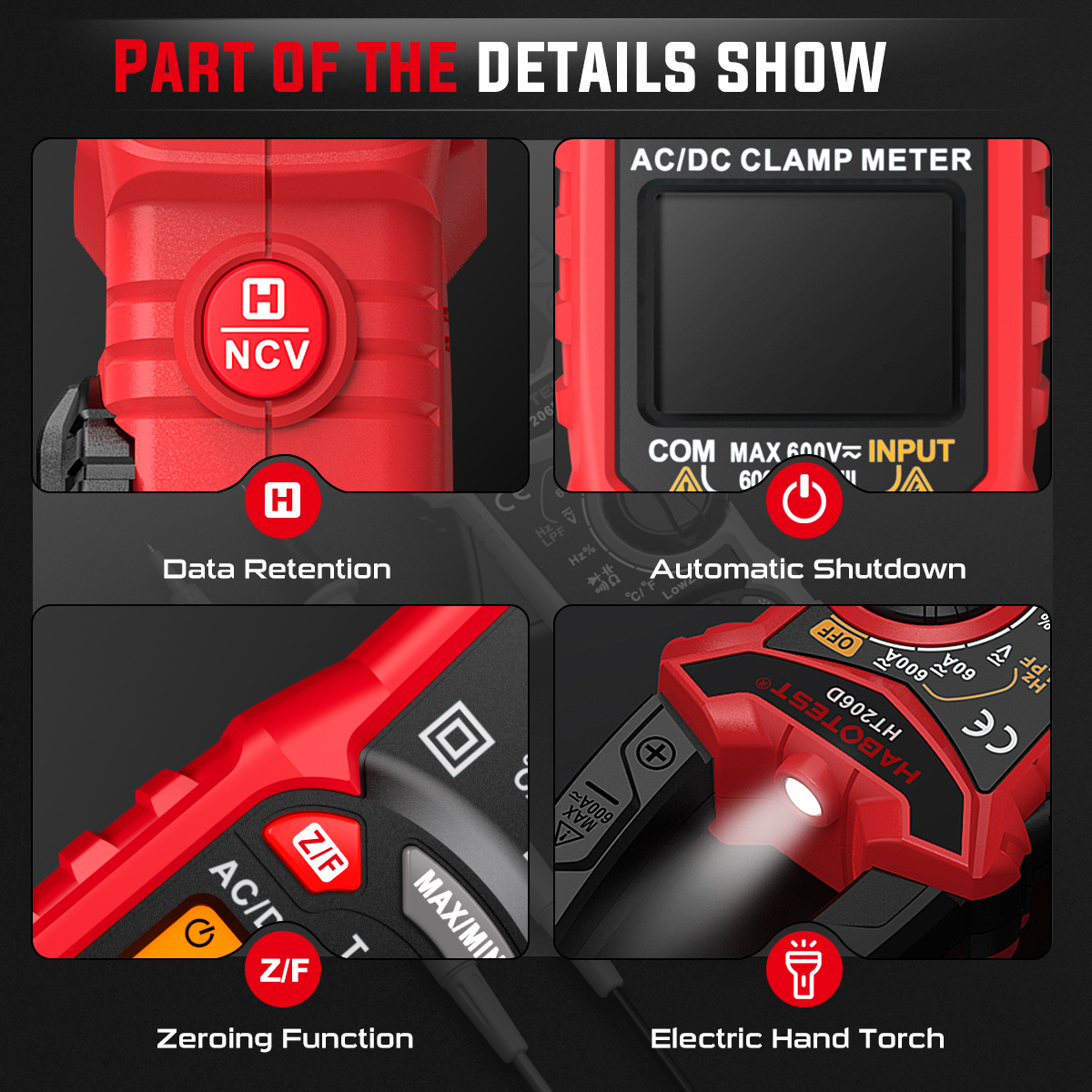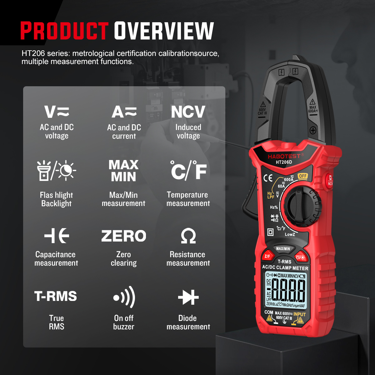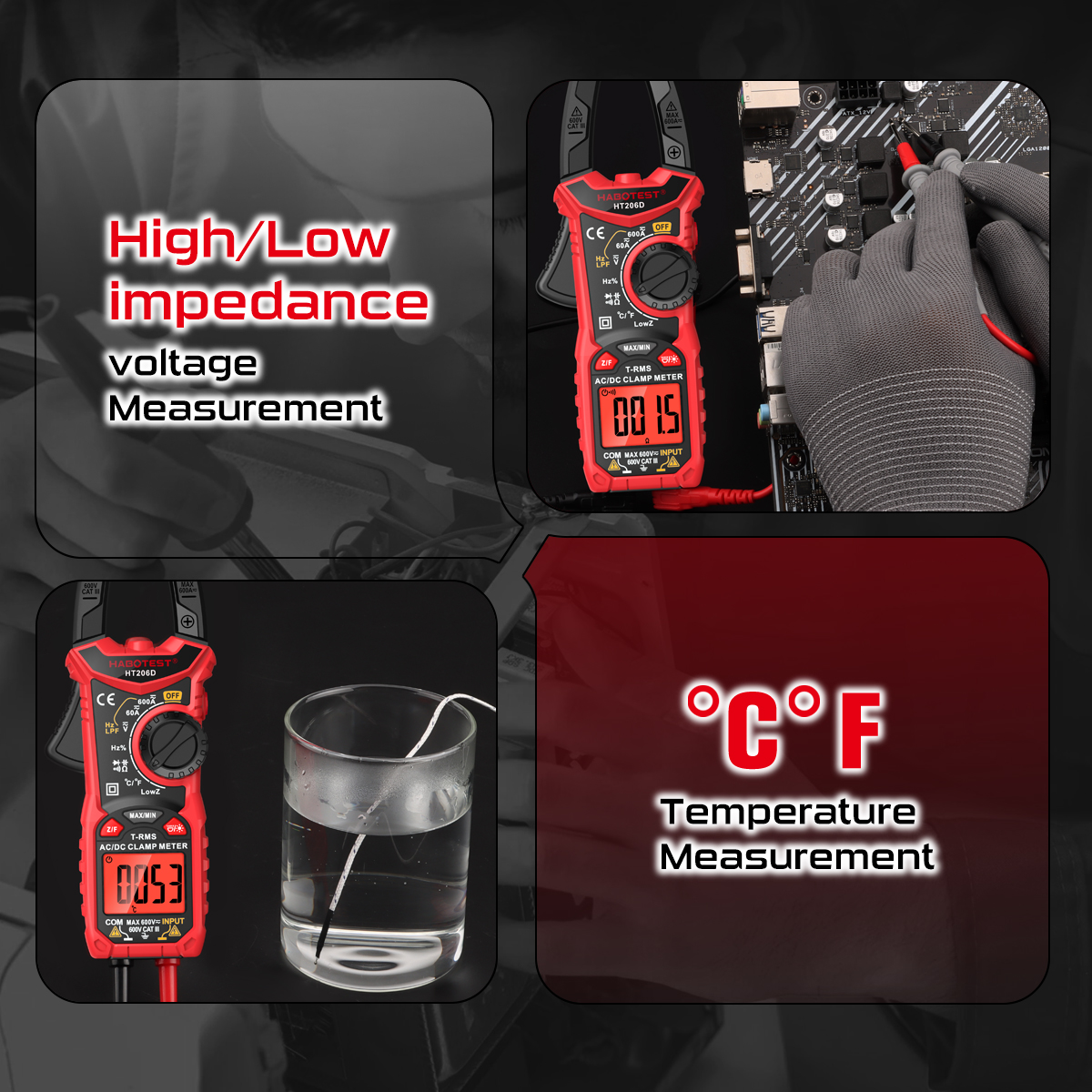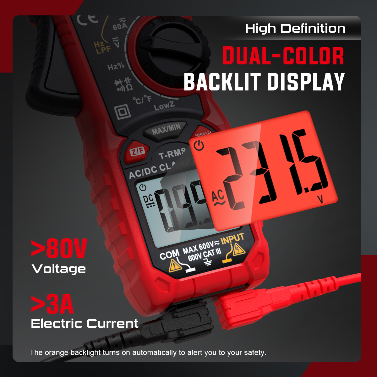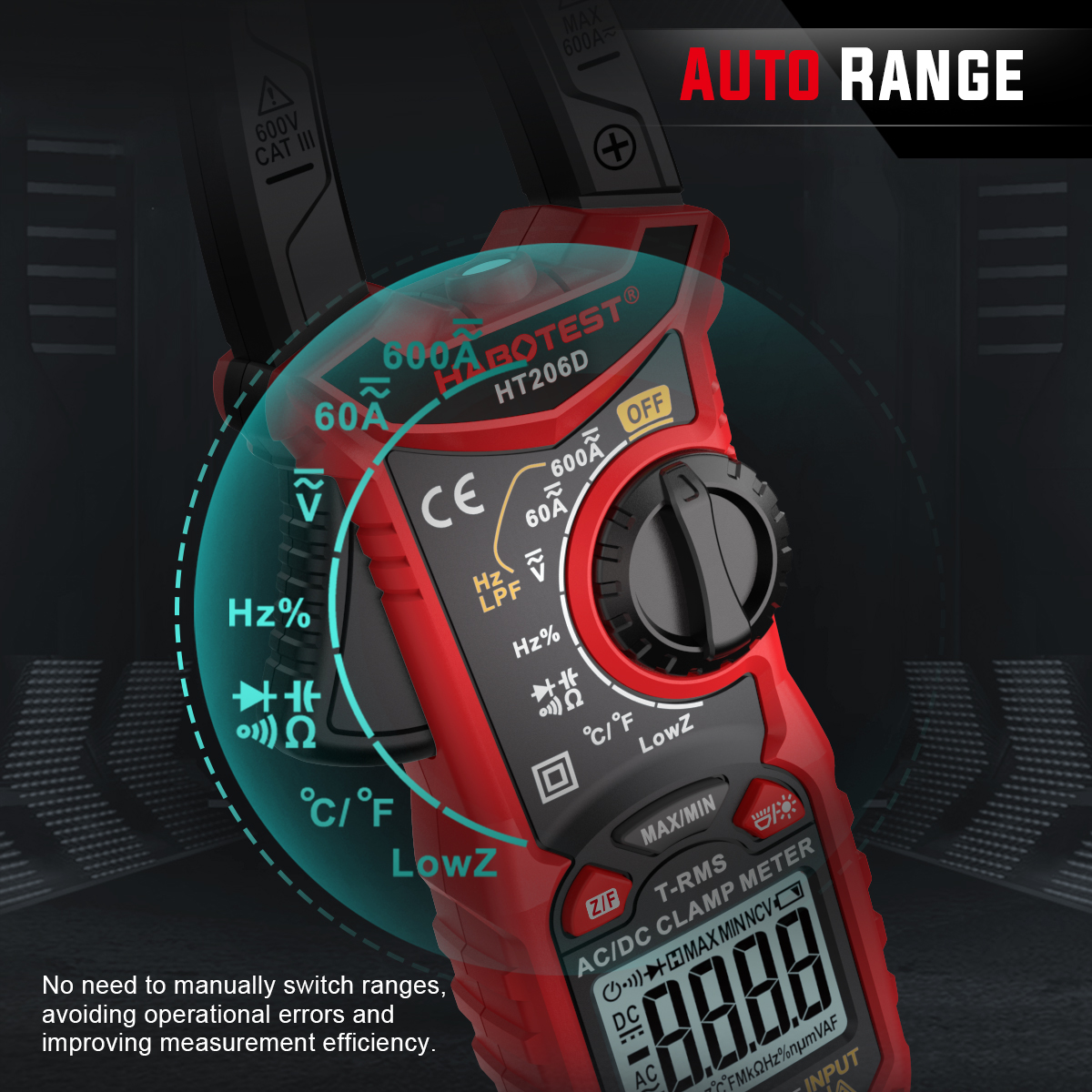 AC Voltage: 6V/60V/600V (±0.8% reading +5)