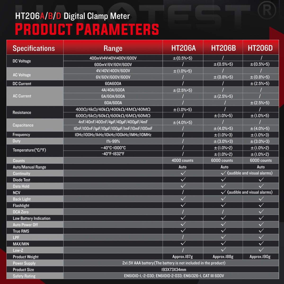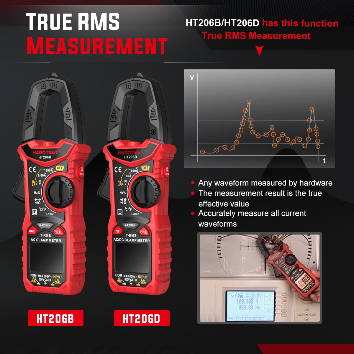 AC Current: 6A/60A/600A (±2.5% reading +5)