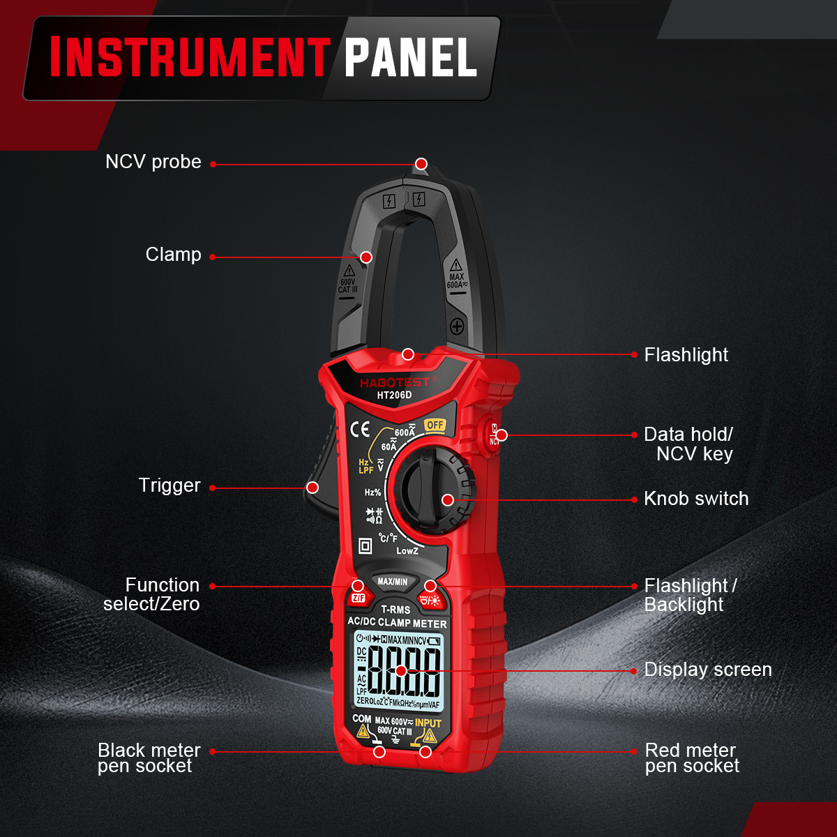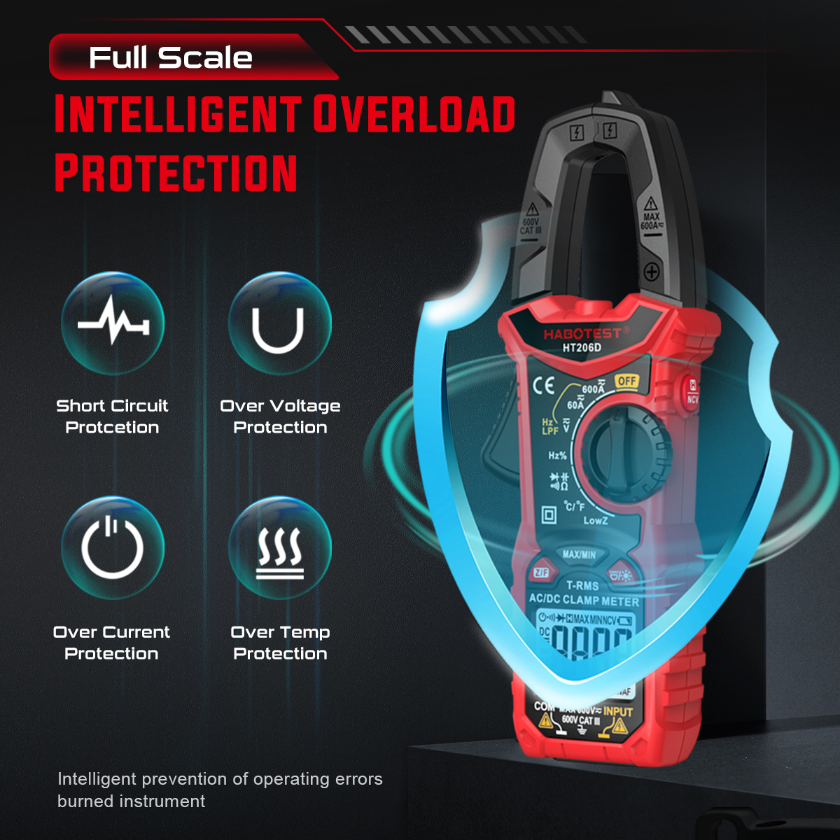 DC Voltage: 600mV/6V/60V/600V (±0.5% reading +5)