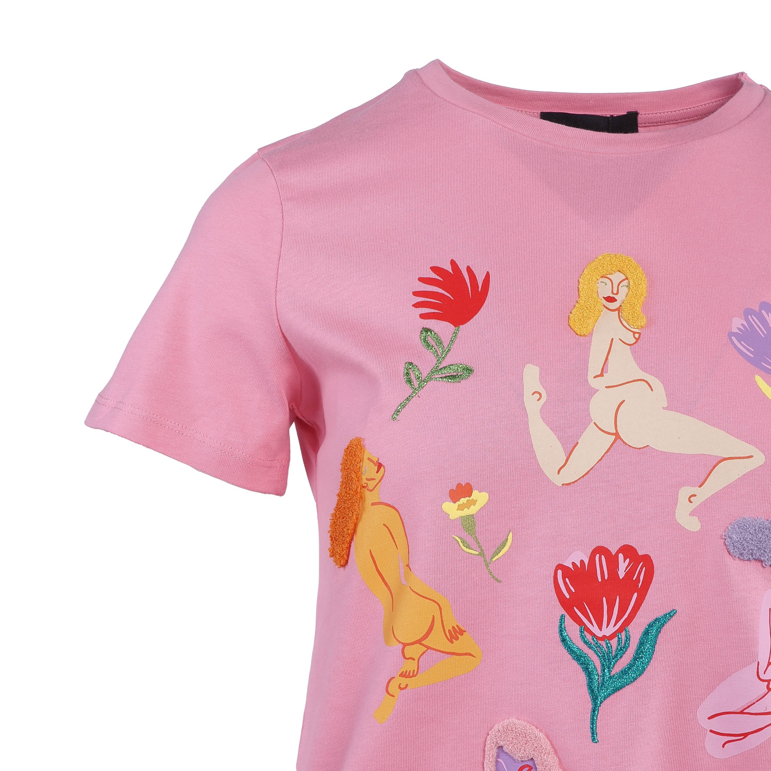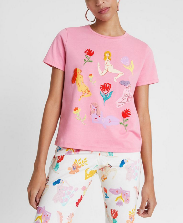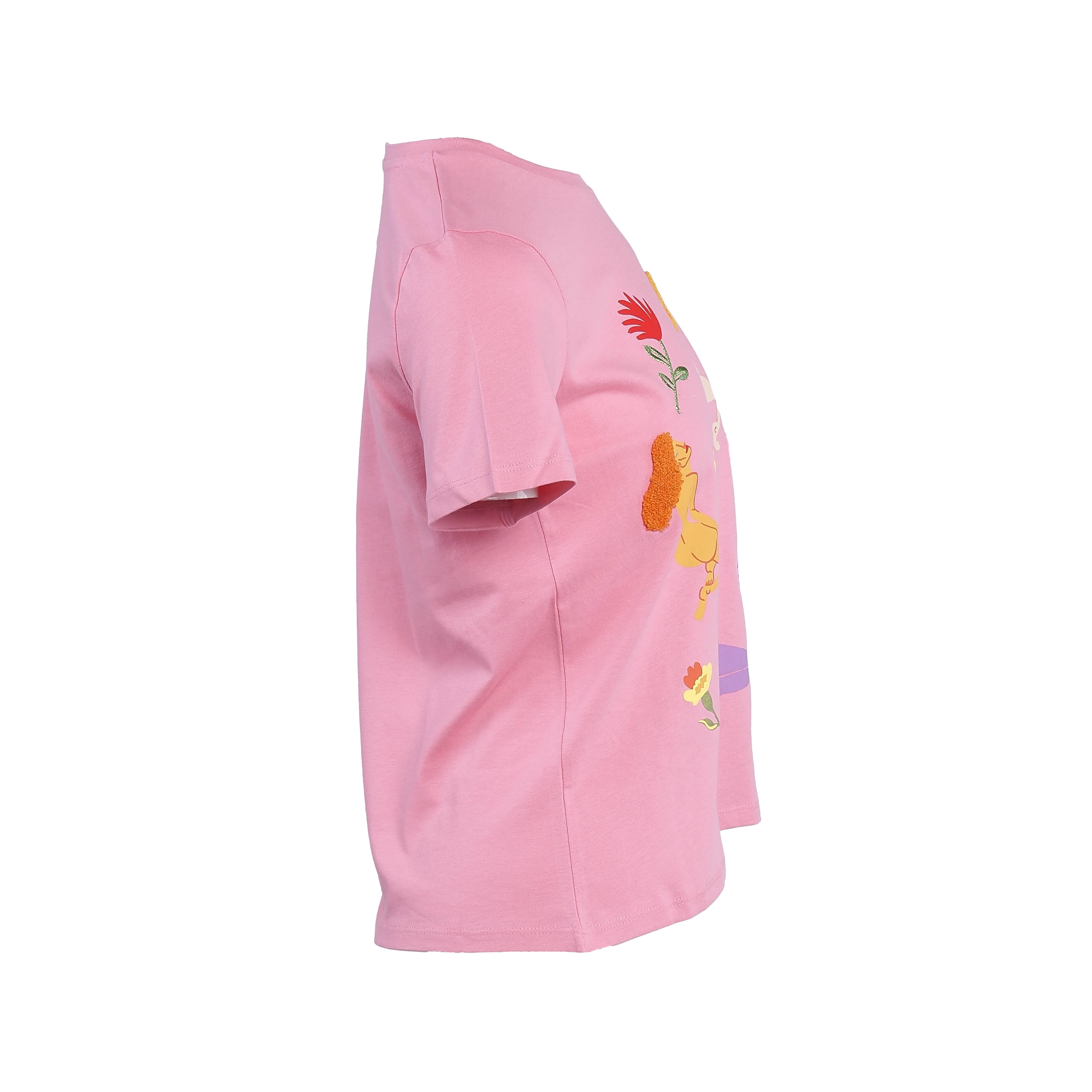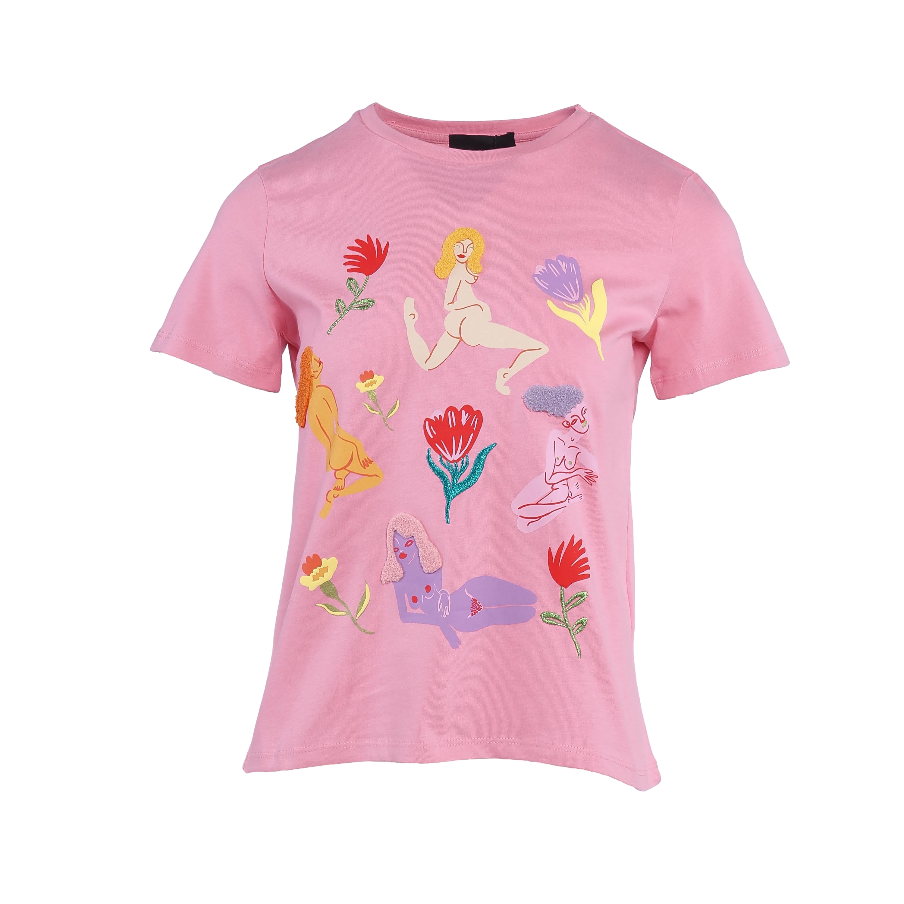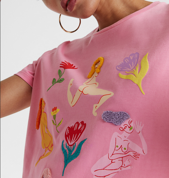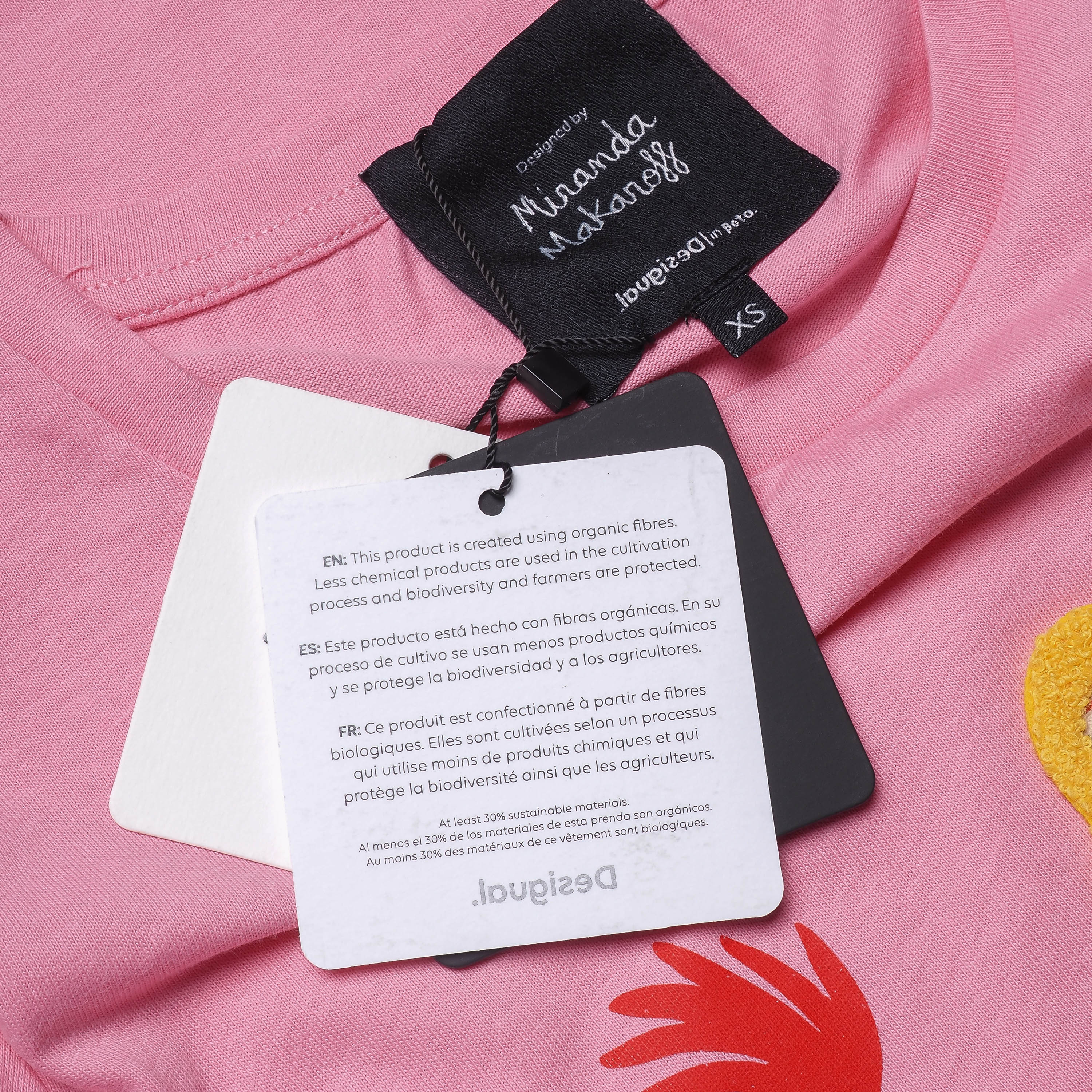 Desigual Women's Top T-Shirt Print Embroidered Pink XS 20SWTKDE