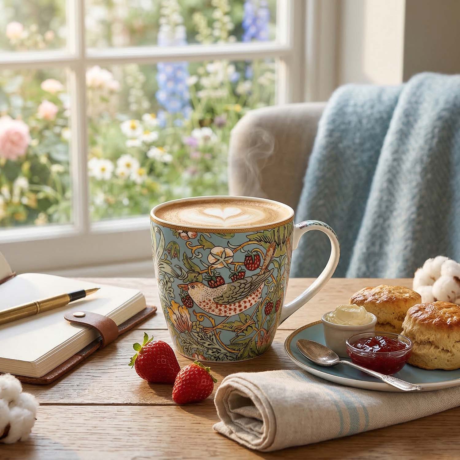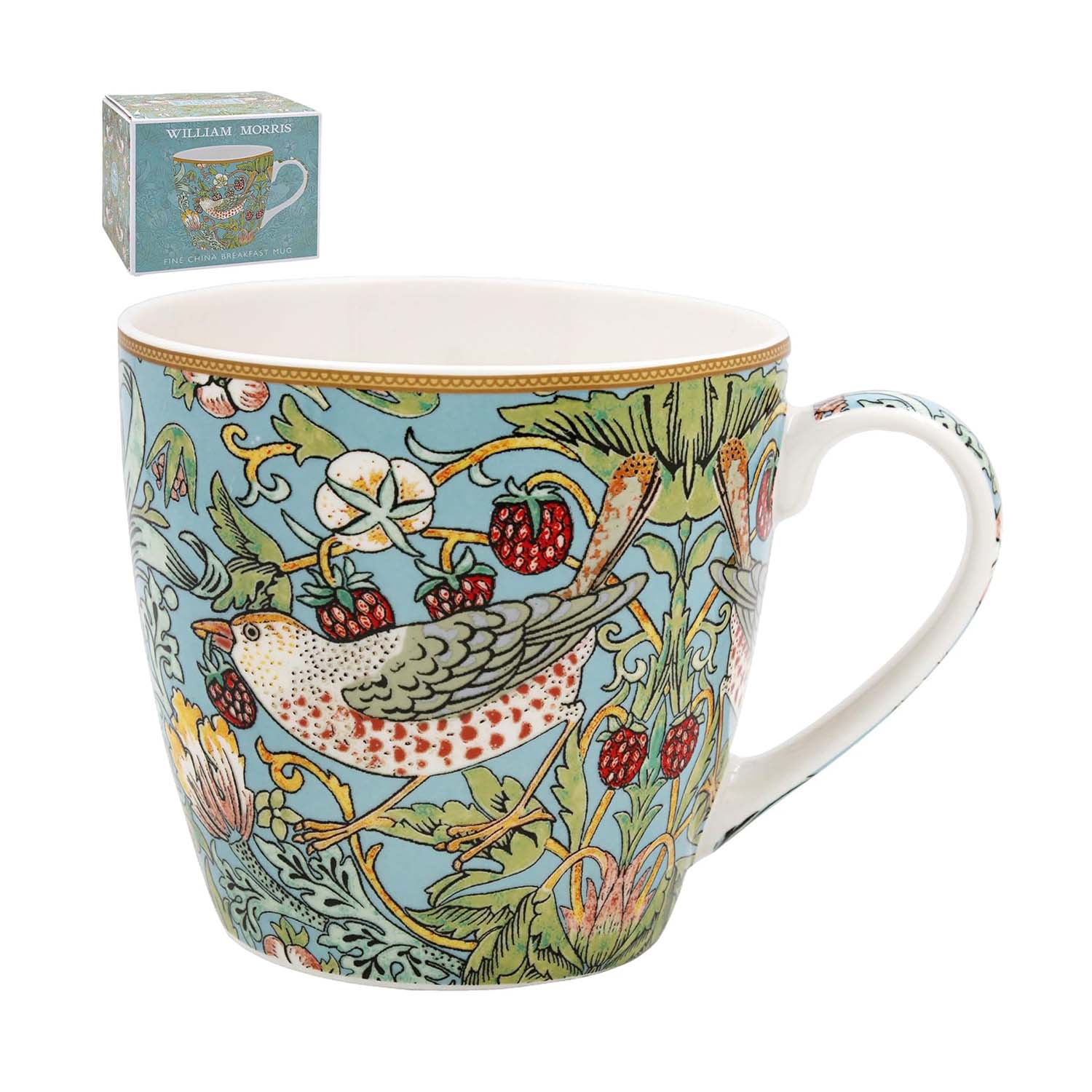 Inspired by William Morris’ iconic Strawberry Thief artwork, this fine china breakfast mug brings timeless elegance to everyday moments. The generous 400ml capacity makes it ideal for morning coffee, tea, or hot chocolate, it offers the perfect balance of comfort and style. Designed for modern living, it is both dishwasher and microwave safe, making it as functional as it is artistic.