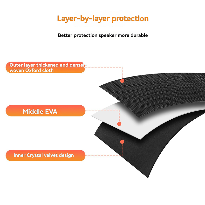 l Outer thickened encrypted Oxford cloth + middle EVA + inner crystal velvet design, can better protect the speakers and more durable