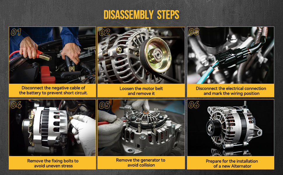 - Carefully disconnect the wiring harness and remove the mounting bolts securing the old alternator.