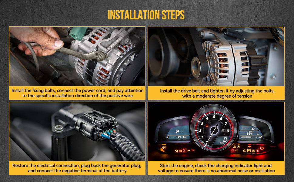 - Secure the alternator with bolts, reconnect the wiring harness, and double-check all connections.