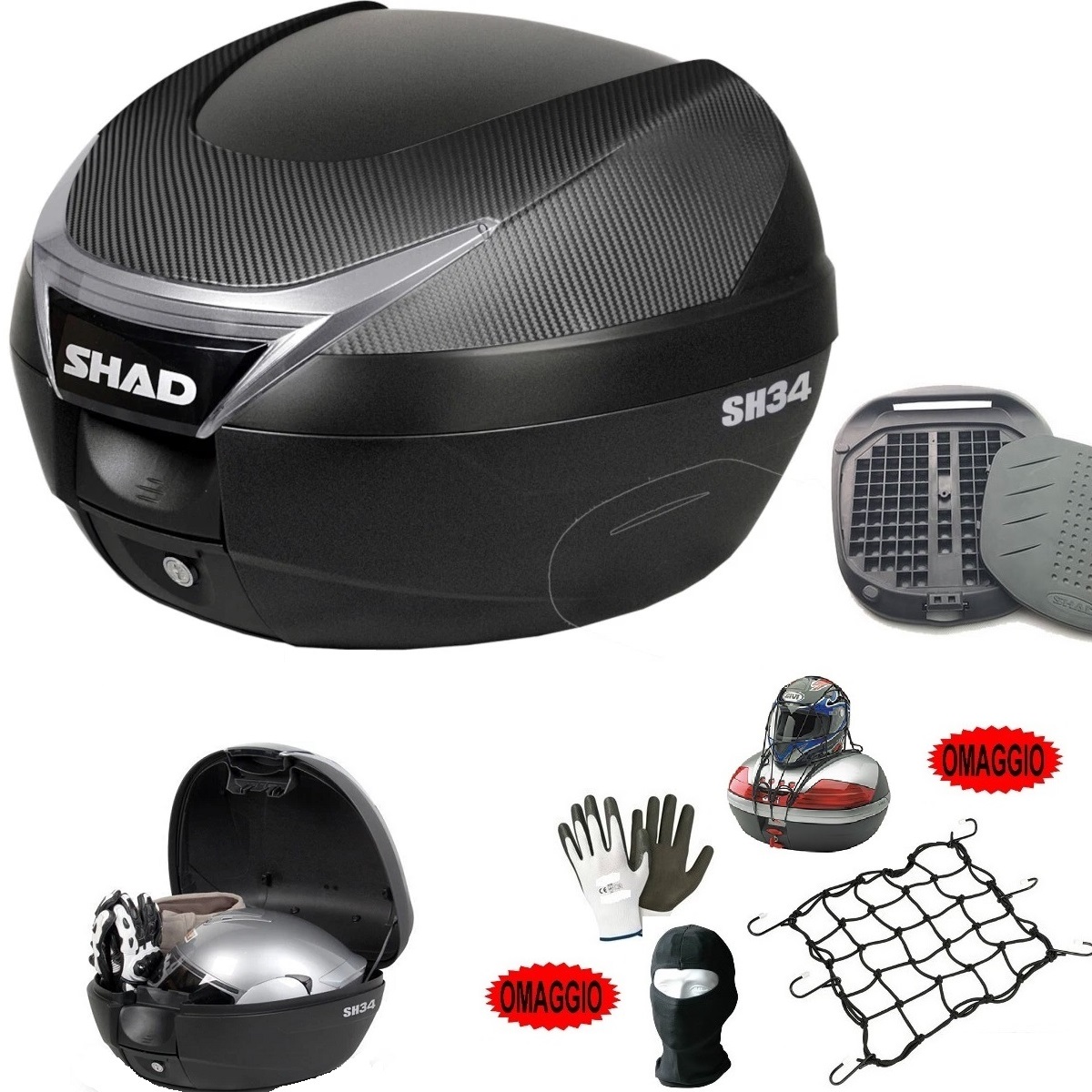 IL BAULE SH34 è una valigia da moto compatta e pratica, realizzata in polipropilene rinforzato di alta qualità e con capacità per guanti e casco modulare. Dalle forme curve e dal riflettore fumè, è un basic della gamma SHAD. Ha le dimensioni perfette, poiché si adatta sia agli scooter che alle moto di piccola cilindrata. Senza nervature tra le cerniere e una curvatura semicircolare nella parte posteriore del bagagliaio, offre maggiore comfort ed ergonomia per il secondo passeggero. Dispone del Press Lock System, una chiusura a pressione semplice ed ermetica. Come tutti i bauletti SHAD, si apre e si chiude con una mano, senza la necessità di utilizzare la chiave per aprirlo. Lo useremo solo quando vogliamo bloccarlo sulla moto. Incorpora una fessura che funge da maniglia ergonomica per facilitare il trasferimento della valigia. Include la piastra e il kit bulloneria. La capacita' massima e' di un casco integrale e un paio di guanti invernali Carico massimo 3kg -DIMENSIONI: 43X42X31 Si monta su tutti i portapacchi con base piana di moto e scooter sia di serie che non.