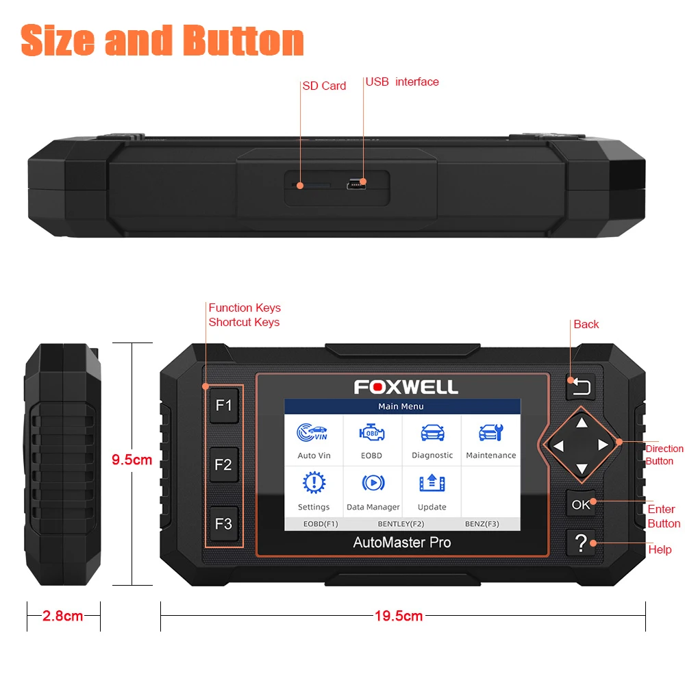 9. Better User Experience: 4.3’’ color screen, menu-driven operations; Carried with its durable protective case, the tool is preventive from dust and fall, daily wear and tear. 16G memory card and USB cable offers LIFETIME UPDATE.
