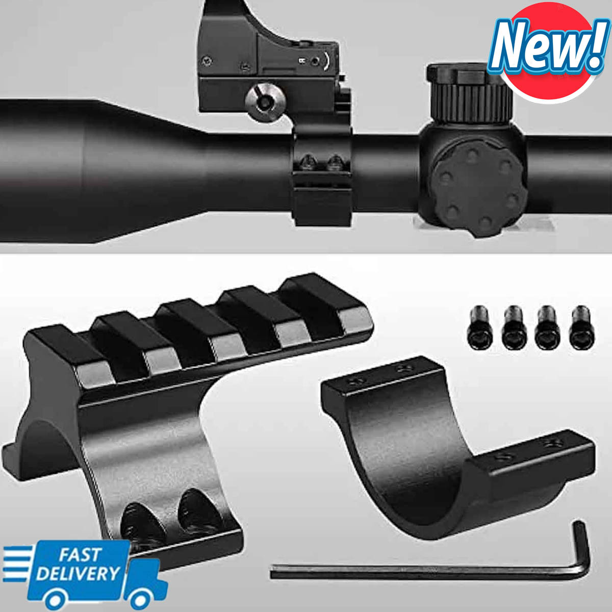 Compatible with most scopes or barrels: with 1'' (25.4mm) or 1.18"(30mm) diameter,Top Rail Length: 40mm, Top Rail Width: 20mm