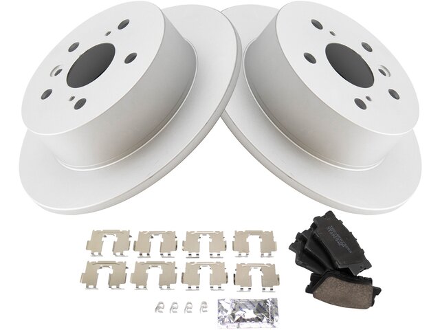 (1) Rear Ceramic Brake Pad Set; (1) Brake Cleaner & Fluid Kit; (2) Rear Premium G-Coated Brake Rotors