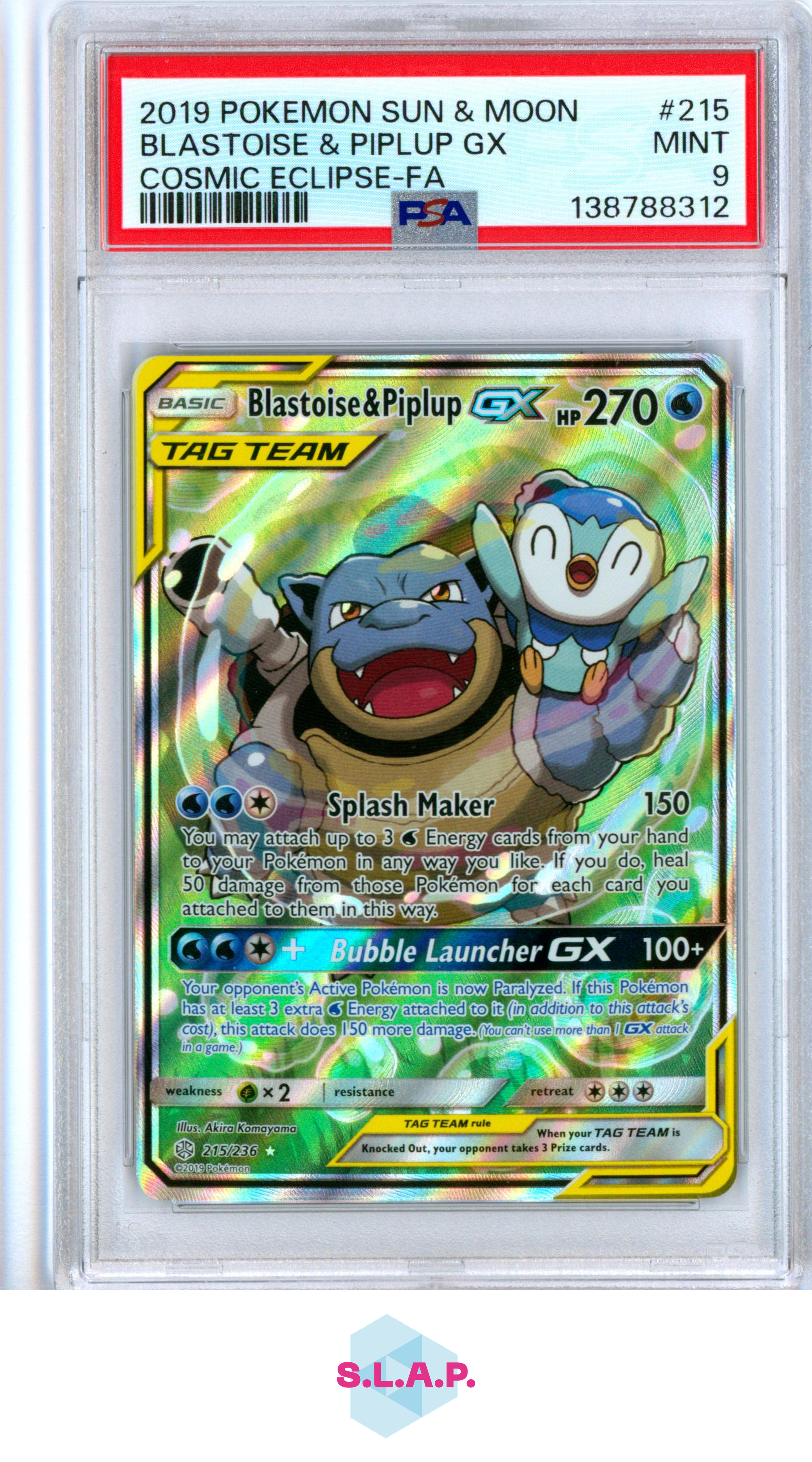 Graded Card: BLASTOISE & PIPLUP GX COSMIC ECLIPSE-FA POKEMON SM COSMIC ECLIPSE 2019 215 PSA 9