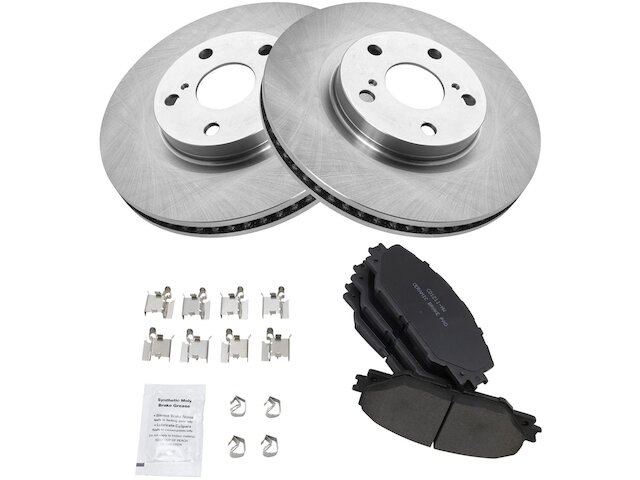 - Package Contents: (2) Front Brake Rotors; (1) Front Ceramic Brake Pad Set; (1) Brake Cleaner & Fluid Kit