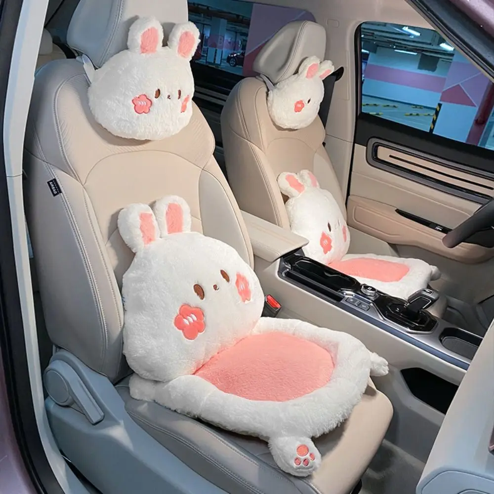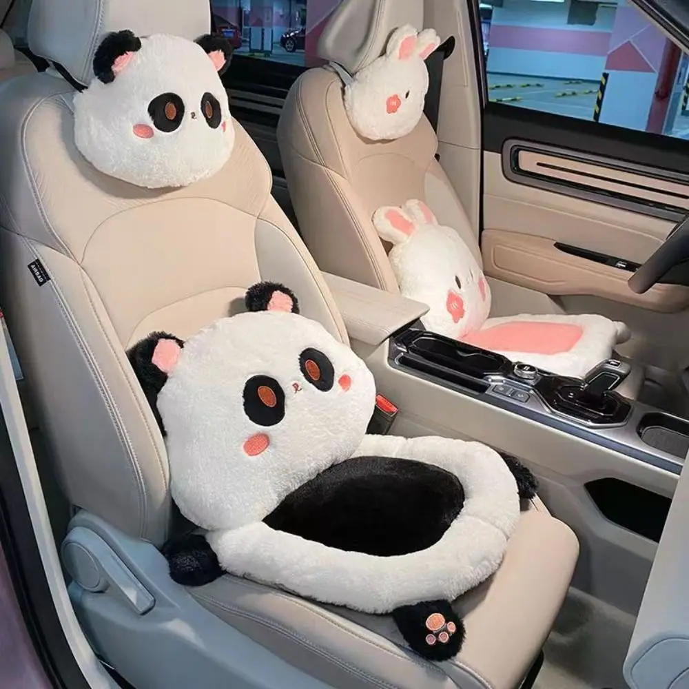 Creative Cartoon Rabbit Panda Auto Car Seat Head Neck Rest Cushion Headrest Pillow Plush Pad Car Safety Decorative Car Pillow