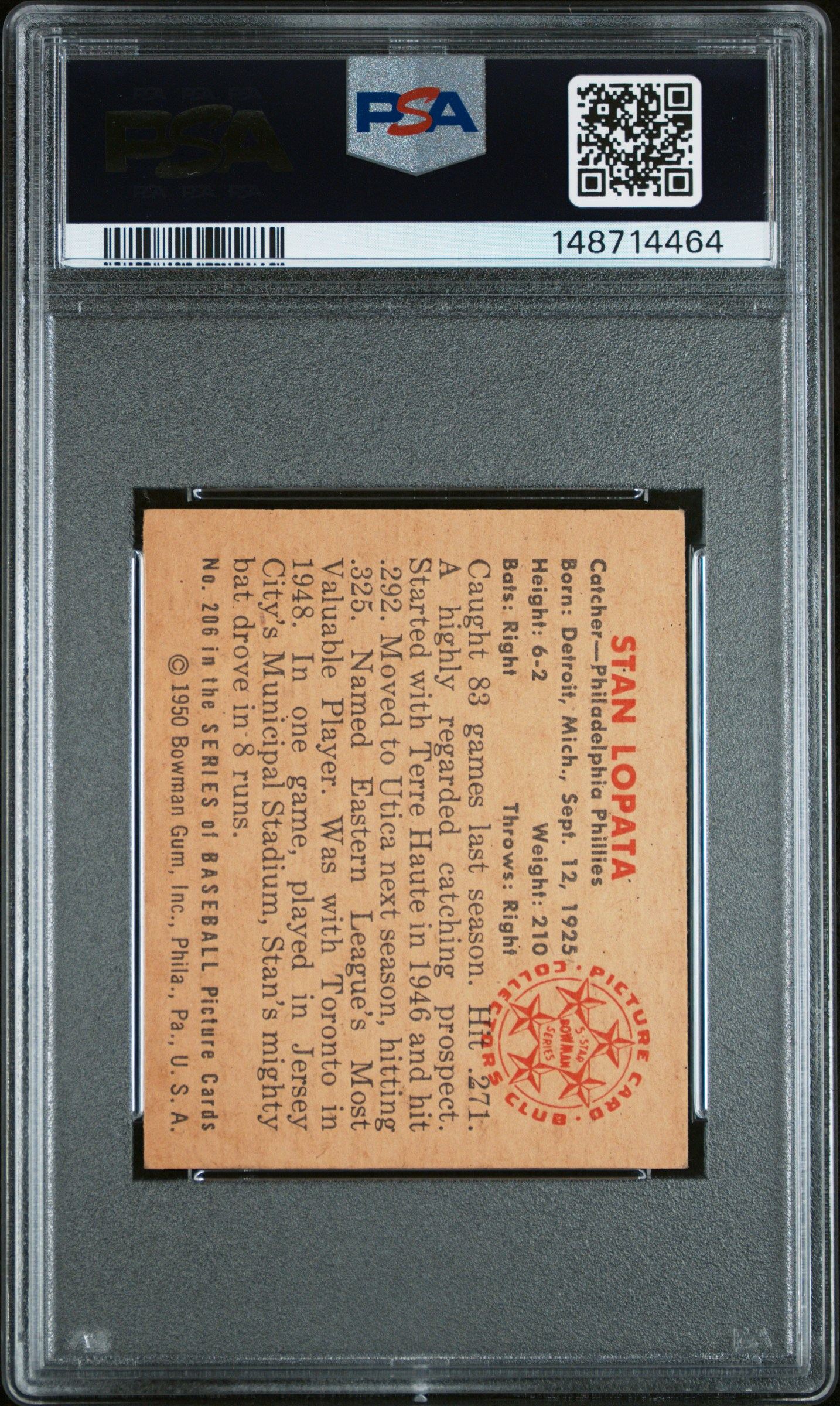 | Stan Lopata 1950 Bowman PSA 2 #206 Philadelphia Phillies |