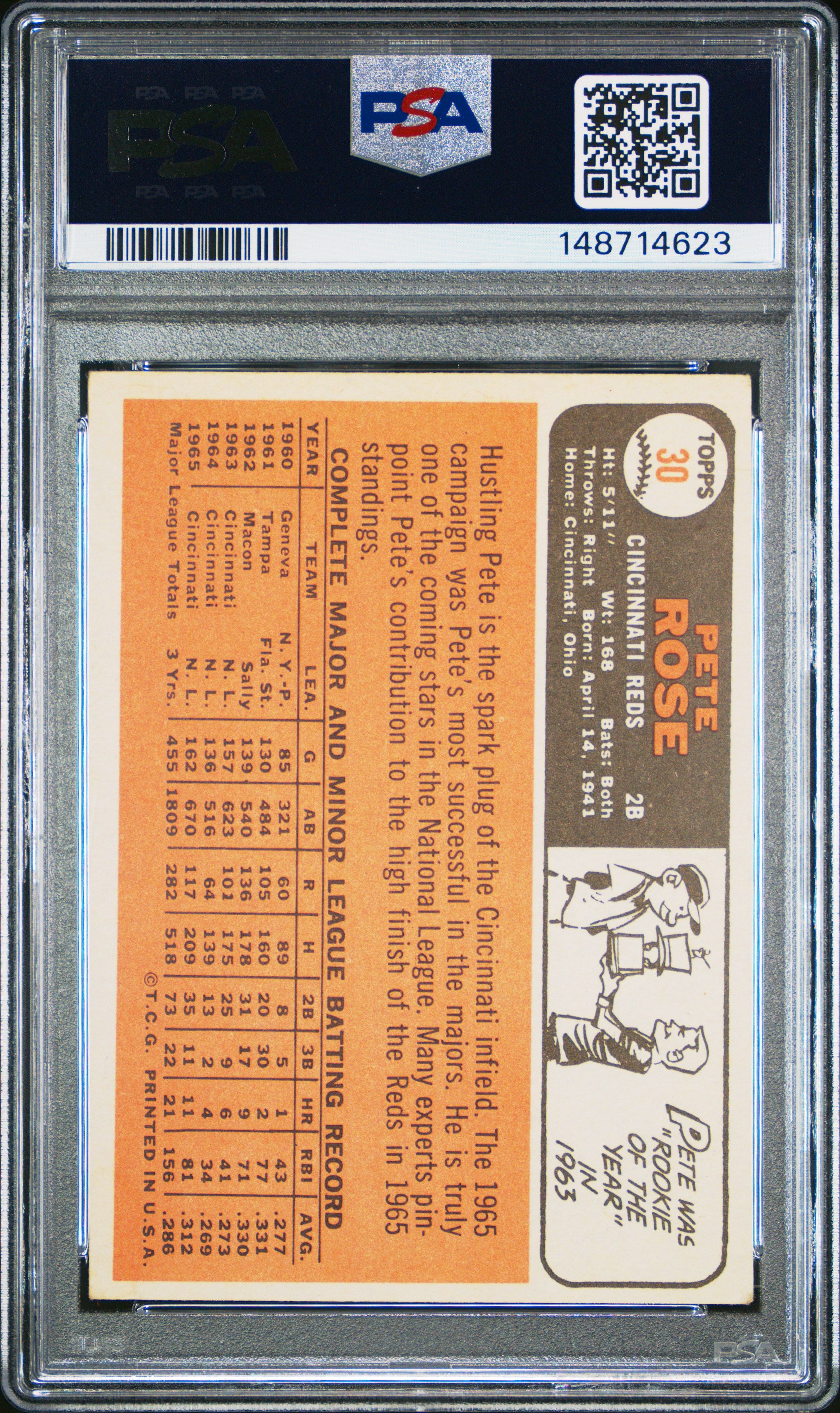 | Pete Rose 1966 Topps PSA 3 #30 Cincinnati Reds |