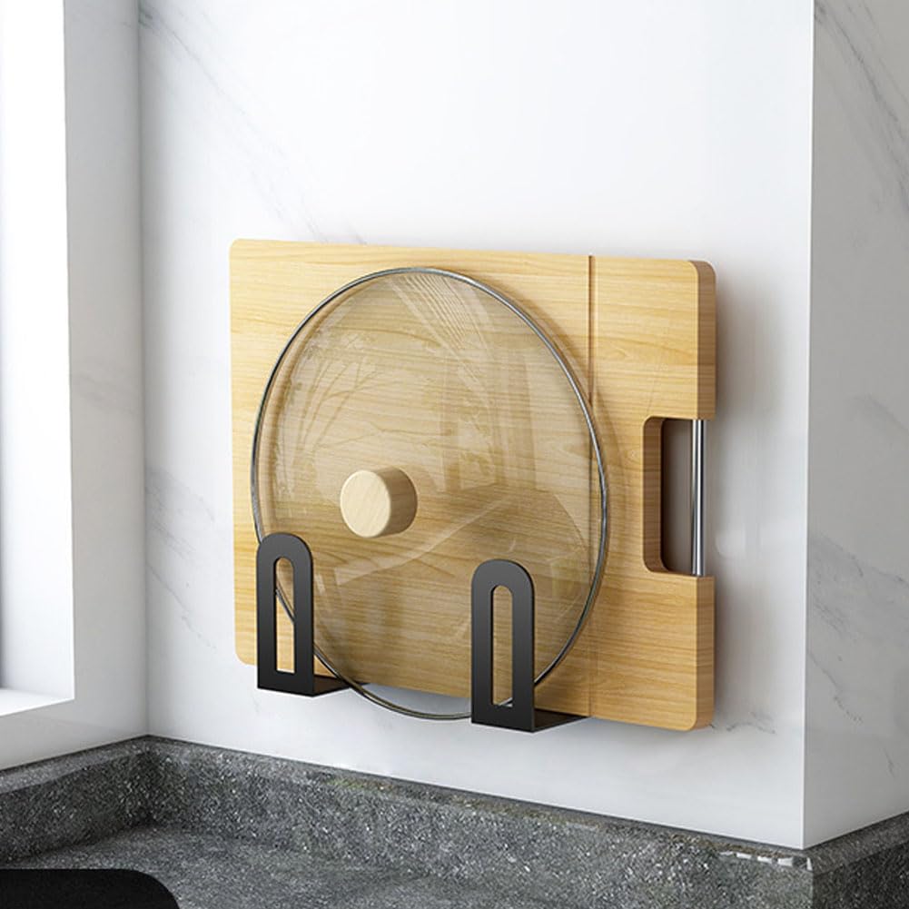 4. The storage rack for pot and pan lids are plus the easy fit to almost any cabinet door, the color blends well with our cabinets and woodwork.
