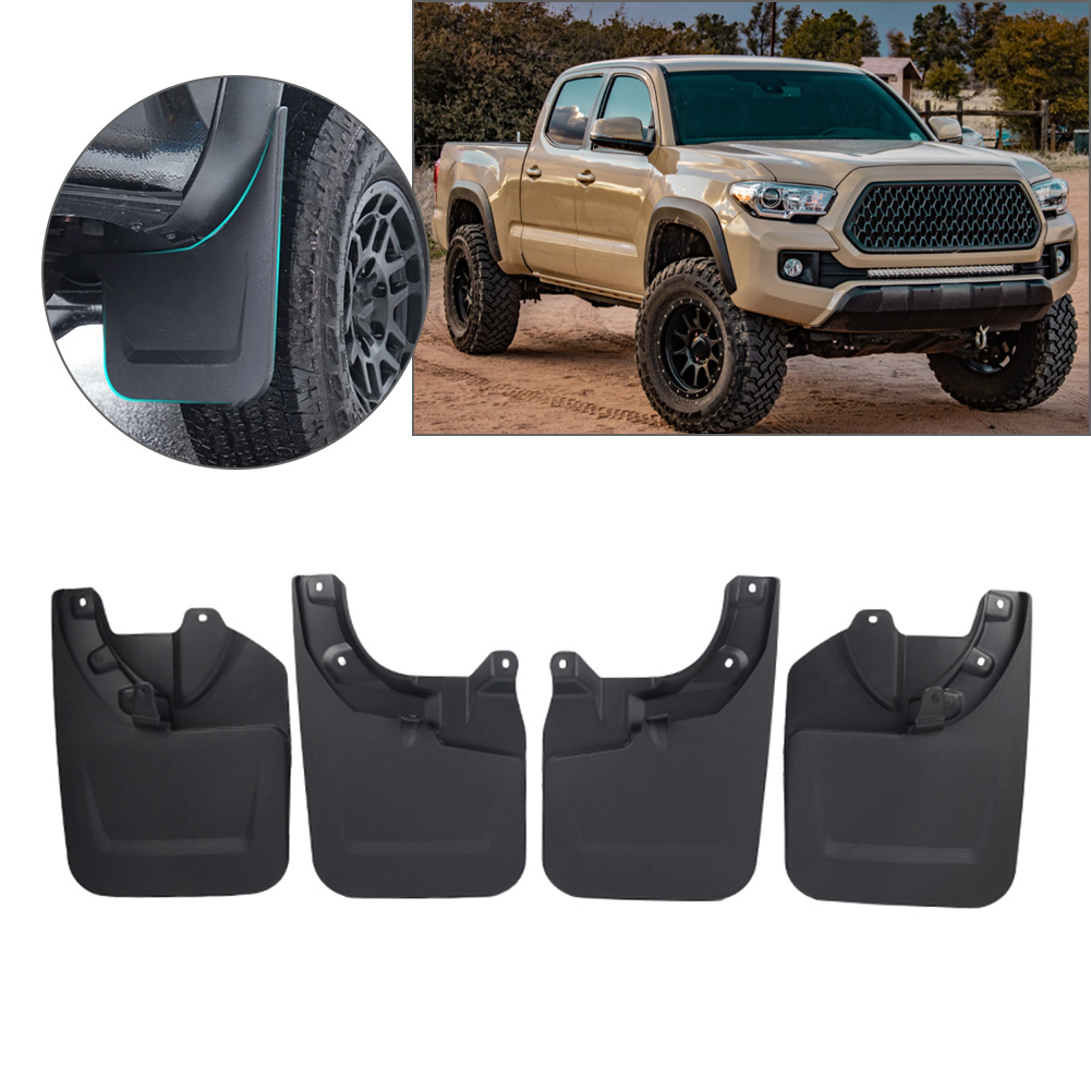 Wheel Mud Flaps Splash Guards For Toyota Tacoma 2022-2023 Features: 1. An instant improvement for your vehicle' s appearance with sleek style that looks like it came from the factory, with some added custom flair. 2. Provides protection for the car btody, reduces splashing of mud and prevents flying debris on the road from scratching the car & it stop from messing up your paint. 3. They are made of outstanding PP + TPO materials, involving features sturdy, elastic, anti-corrosion, anti-crack that can strengthen the safe work of fenders in all harsh environments. Specification: Condition: Brand New (Never Been Used or Installed) Material: PP + TPO Color: Black Fitment Type: Performance/Custom Placement on Vehicle: Front, Rear, Left, Right Fitment: For Toyota Tacoma 2022-2023 It fits for the model with fender flares only. Not fits for SR & SR5 model. Because there are different versions in different countries, please confirm the size and check our description and photos before purchase. Packing Included: 4Pcs Mud Guards Notes: 1. All dimensions are measured by hand, there may be small deviations. 2. No installation instruction included, professional installation is highly recommended. 3. These are aftermarket mud flaps, the pre-drilled holes may not line up with the factory drilled ones. In that case, re-drill will be required. 4. The real color of the item may be slightly different from the pictures shown on website caused by many factors such as brightness of your monitor and light brightness.
