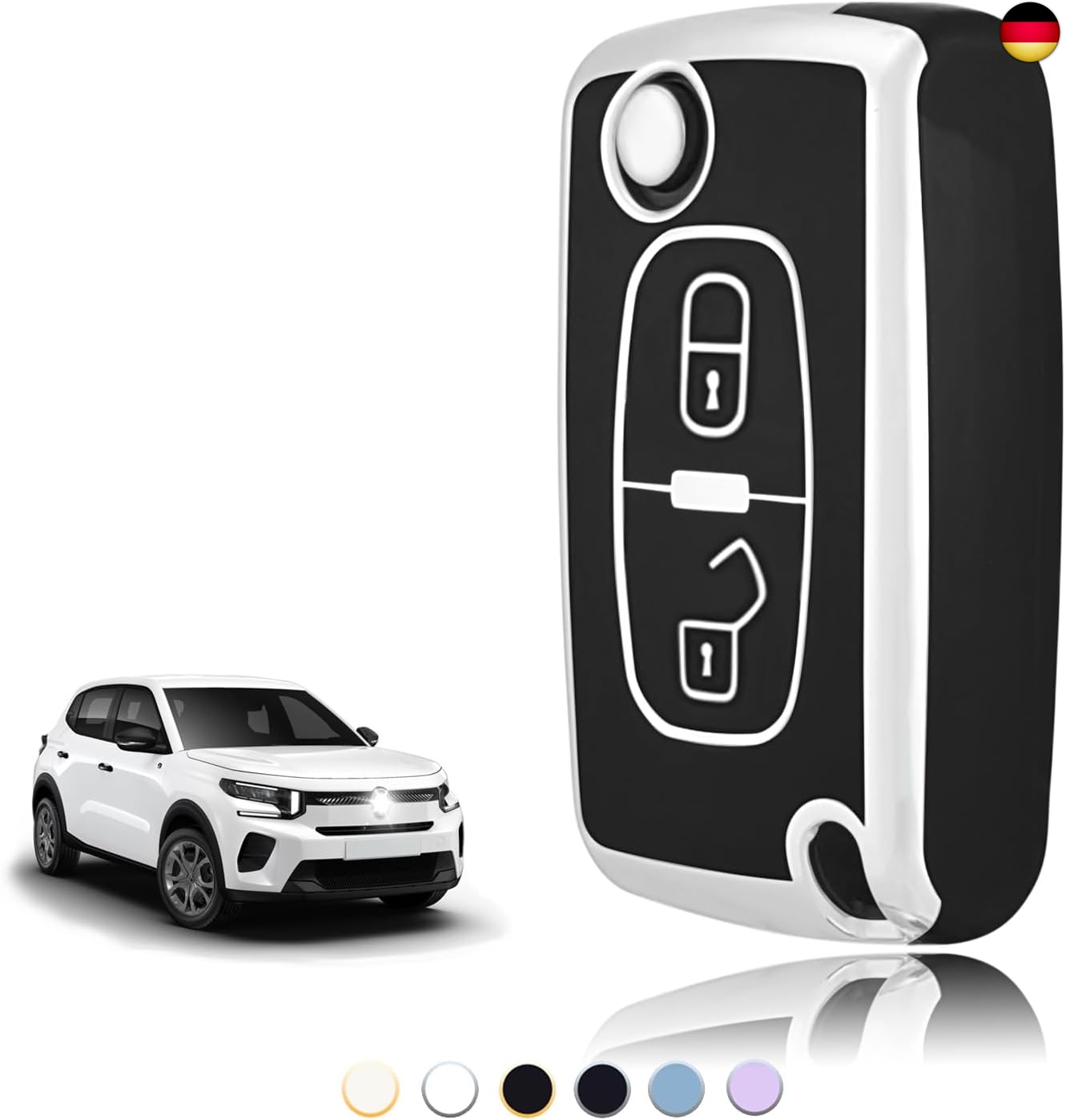 Schlüsselhülle TPU, Autoschlüssel Hülle Passt für Peugeot 207 CC 308 SW 607 Expert Partner Tepee Citroen C4 C3 Picasso Berlingo FIAT Scudo, Schlüsselcover Schutz Schlüsselgehäuse - Flip Key