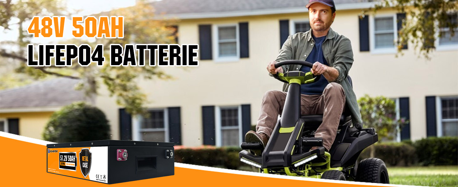 UMWELTFREUNDLICHE 48V 50Ah LiFePO4-Deep-Cycle-Batterie kann eine Kapazität von 2,4 kWh bieten, wiegt 26,5 kg, eingebaute Batterie der Klasse A, die Lebensdauer ist 10-mal länger als bei Blei-Säure-Batterien, 100% nutzbare Kapazität und ein breiter Betriebstemperaturbereich, relativ geringes Gewicht und einfach zu installieren, ist eine ideale Wahl für die Stromversorgung von Campingplätzen im Freien und die einfache Installation in Innenräumen.