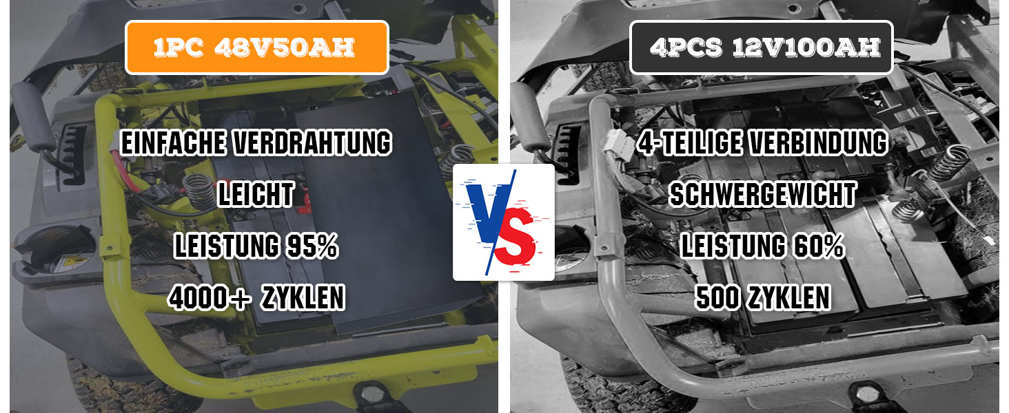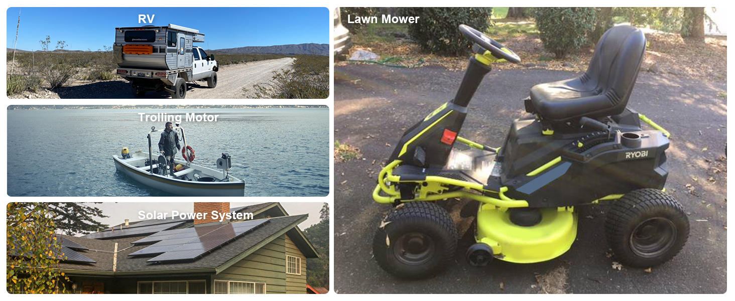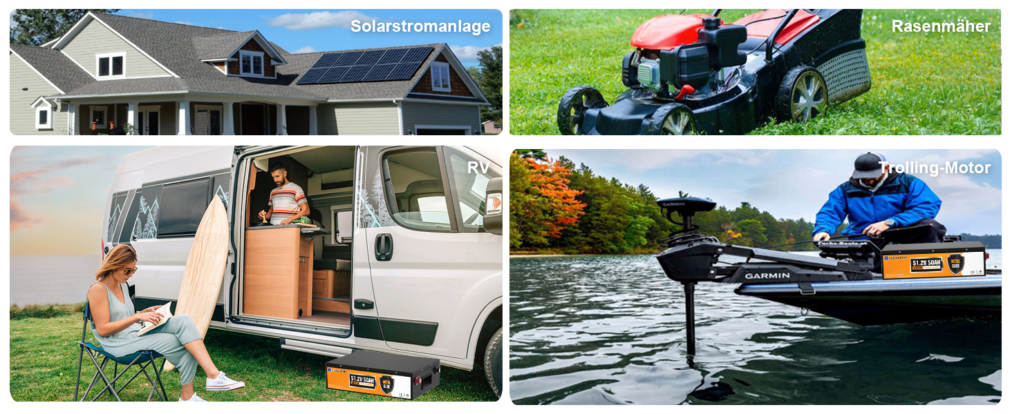 Stromversorgung einer Reihe von 48-V-Anwendungen, darunter Golfwagen, Wohnmobile, Rasenmäher, Trolling-Motoren, Marine- und Off-Grid-Systeme. Sein stapelbares Design und die einfache Verbindung machen es zu einer platzsparenden Lösung für Ihre Aufbewahrungsanforderungen.