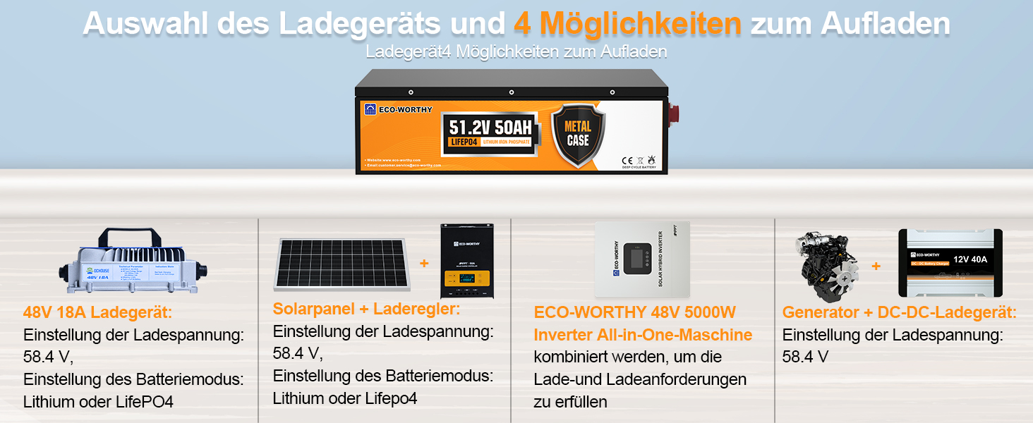 [Hinweis] Dies ist eine Energiespeicherbatterie, keine Starterbatterie, und kann nicht mit jeder Art von Anlasser/Generator verwendet werden. Dies ist eine großartige 48-V-Lithiumbatterie für Ihr ideales Off-Grid-System!