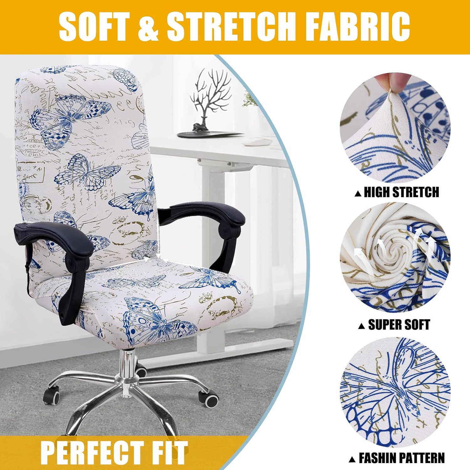 SOFT STRETCH MATERIAL - Smiry office chair covers are made of 95% polyester and 5% spandex fabric,soft and fortable,sturdy and long lasting. High elastic fit to protect your chair from spills,stains and tearing ly.