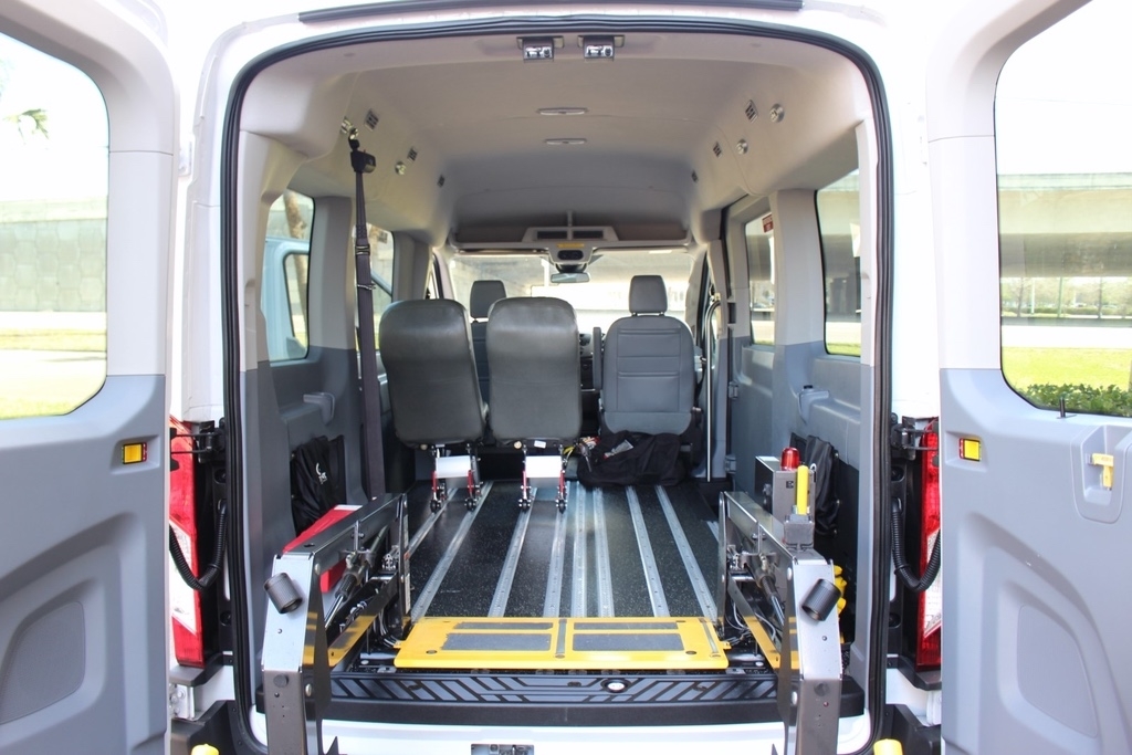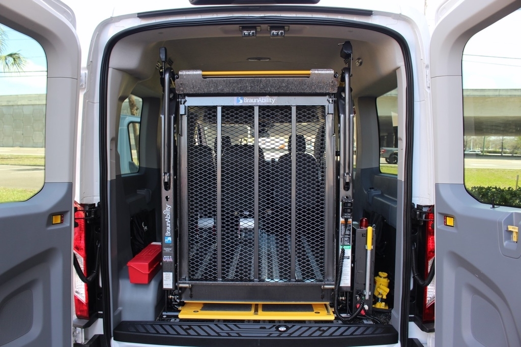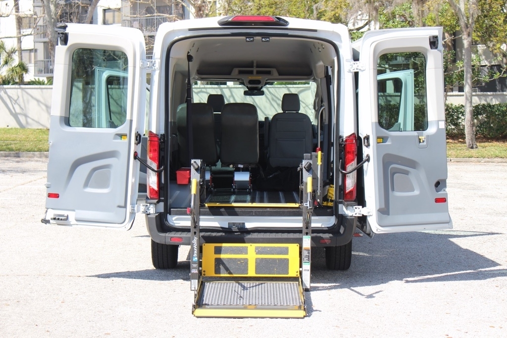 2018 Ford Transit T150 Medium Roof– Handicap Mobility Wheelchair Van. This BraunAbility van is in very good condition with only 65k original miles. It comes equipped with a convenient rear entry power wheelchair lift, making it ready for reliable and comfortable use.