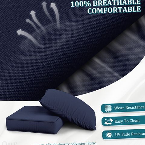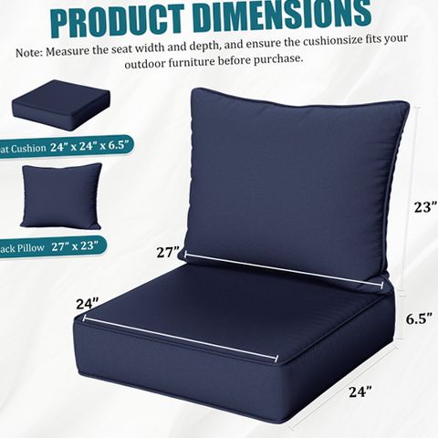 Experience enhanced outdoor seating comfort with the Kimunuk Outdoor Deep Seat Cushion Set, crafted to provide both style and durability. This set includes a generously sized seat cushion (24"W x 24"D x 6.5"H) filled with high-density 30D resilience foam that offers firm yet comfortable support. The accompanying back cushion (27"W x 23"H x 7"H) features premium expanded polyethylene fill for added softness and support. Both cushions are covered in a robust 100% polyester fabric treated with a three-layer waterproof design including a TPU coating, ensuring resistance to water, dust, and fading from sun exposure. The cushions are designed with practical features such as YKK zippers for easy removal and machine washing of covers, straps on back cushions, and anti-slip fabric on seat cushions to prevent slipping. This contemporary cushion set is perfect for enhancing the look and feel of your outdoor patio furniture while providing long-lasting comfort.