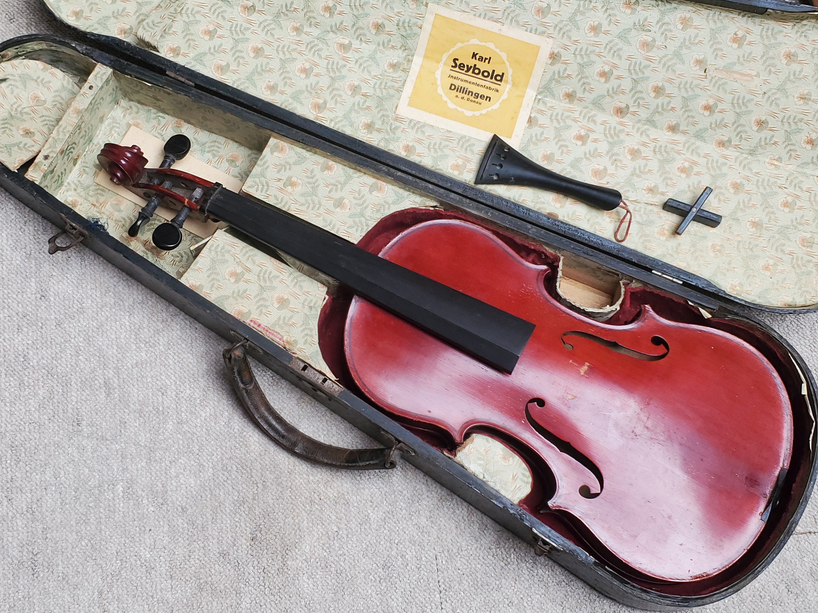 Nice, very old viola in a wooden case. The back of the instrument is nicely flamed and was made out of 1 part. The label reads: "Nicolaus Amatus fecit in Cremona 1630" (the violin is not that old, of course) The instrument needs service and cleaning. The front and back are partly a bit loose, the soundpost is ratteling inside. The length is 64,5cm/ 25 3/8inch. The body is 38,5cm (15 1/8 inch). Please make sure that you see all the photos If you have any questions, please ask. Insured shipping to USA or Canada amounts to 75 USD.