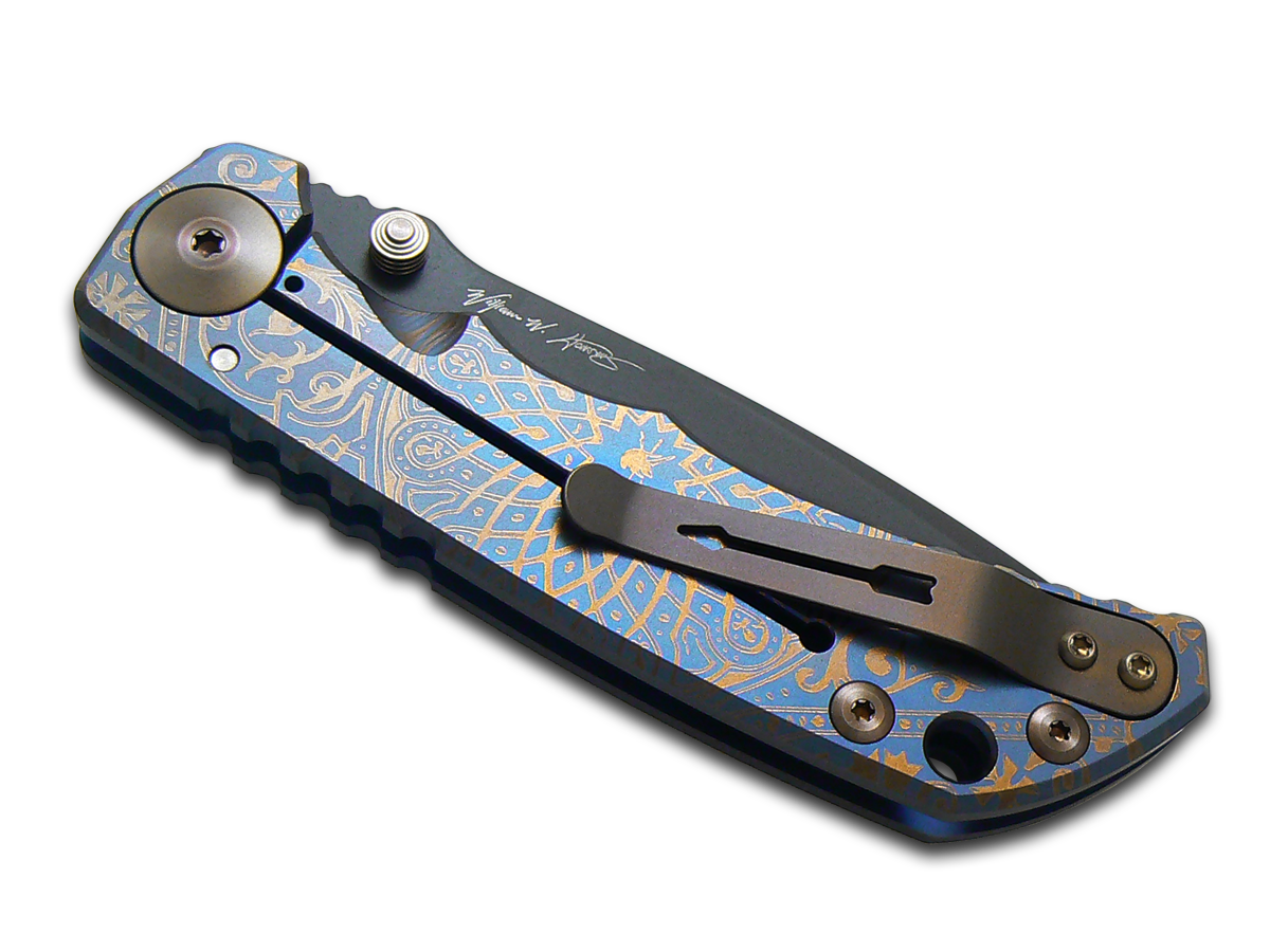 Made in the U.S.A., this Harsey Folder Frame Lock pocket knife is made of CPM MagnaCut Stainless Steel and Bronze Anodized 6AL4V Titanium Handle. This William W. Harsey Jr. Design Spartan Blades, LLC SP SF5RFLUSH TIT ROYAL-F BK-BLU is American Made Knife of the Year at the International BLADE Show .