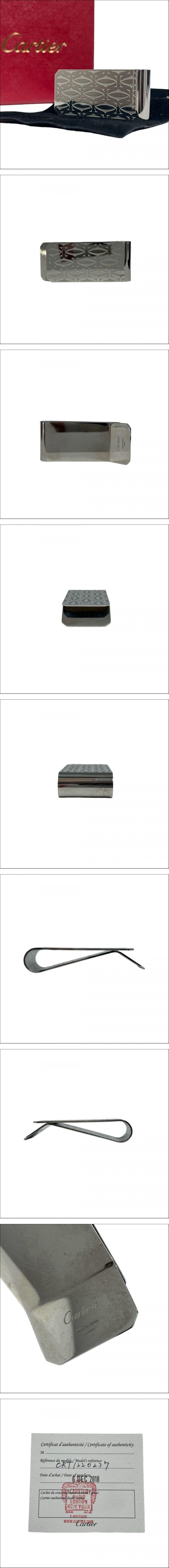 | Cartier Money Bill Clip Wallet Holder 2C Logo Metal Silver Used with Box |