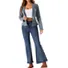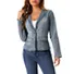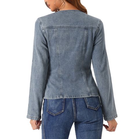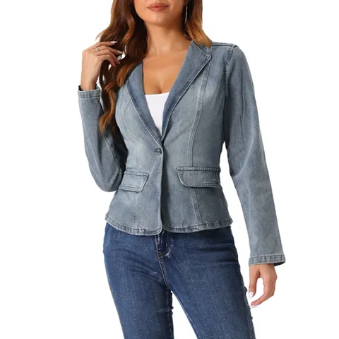 INSPIRE CHIC Women's Stretchy Jean Jacket Lapel Collar One Button Long Sleeve Work Casual Light Weight Denim Jackets L Grey Blue