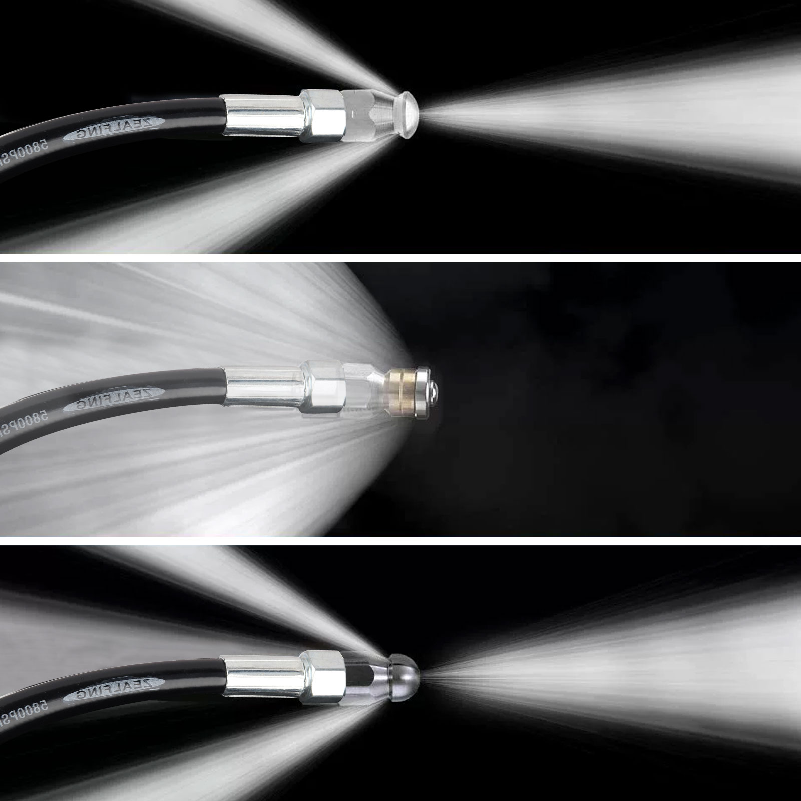 Efficient Sewer Jetter Nozzles: Orifice 4.0 Side port to blast at corners where hose cannot navigate. Ideal for cleaning around the corner. 4.0 orifice Button Nose Sewer Jetter Nozzle clears blockage and flush out debris by front 0° spray jet and 3 rear 33° spray jets. 4.5 orifice Rotating Sewer Jet Nozzle offers an even cleaning and flushes out debris by 3 backward rotating spray jets which blast into clogged pipe and moves it through pipe. Corner sewer jetter nozzle: 1 water spray sideways that clears blockages at the corner. 3 rear jets at 33° flush out debris loosened by the front jet.