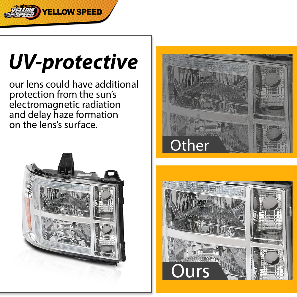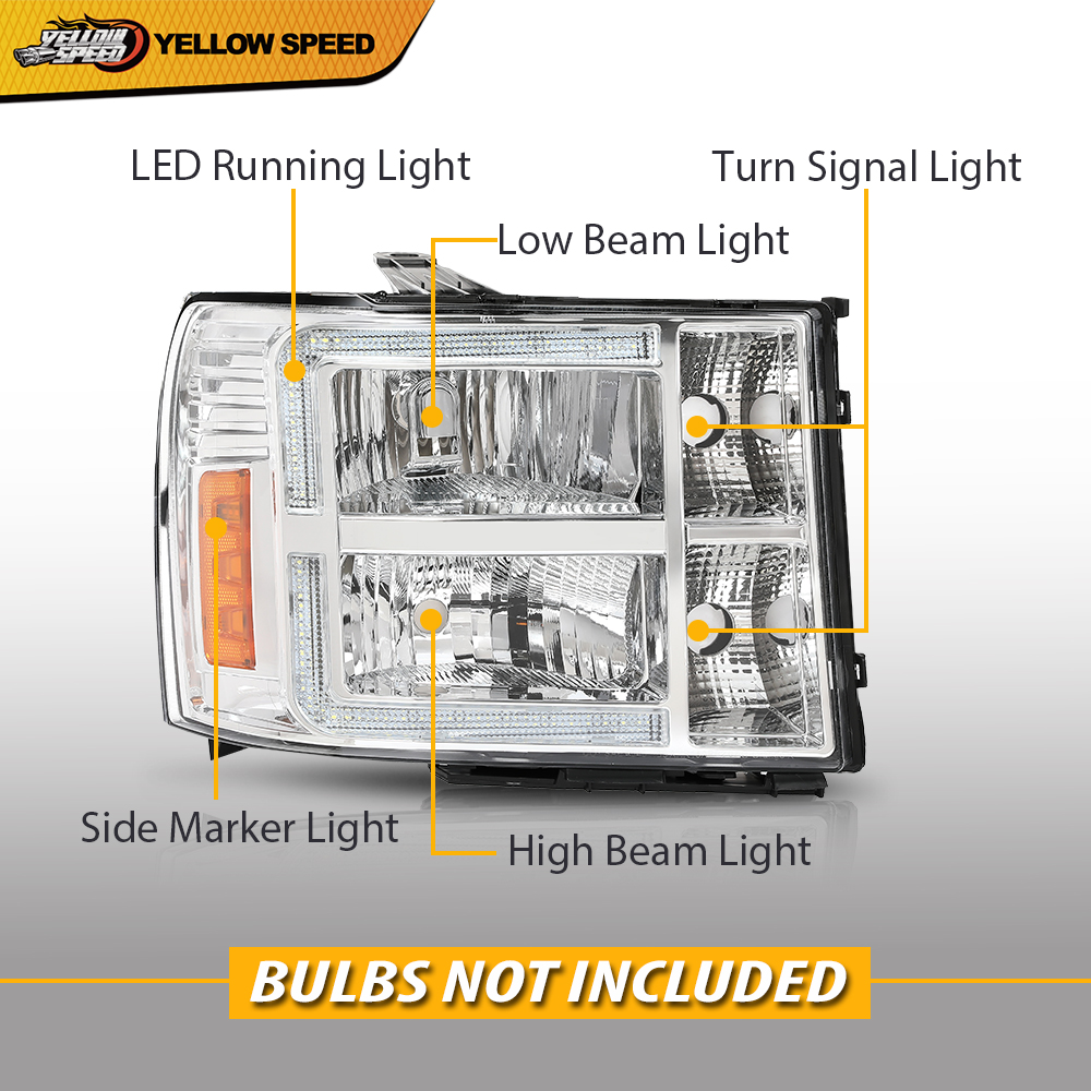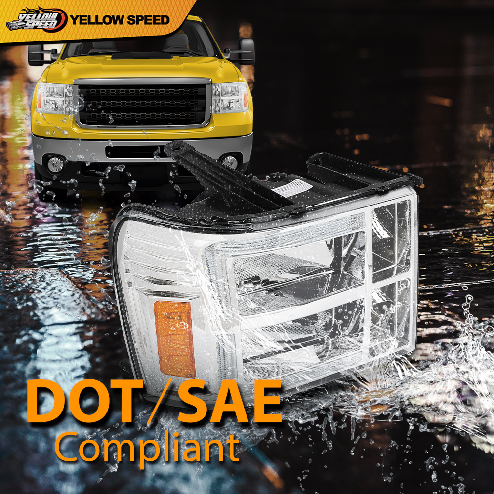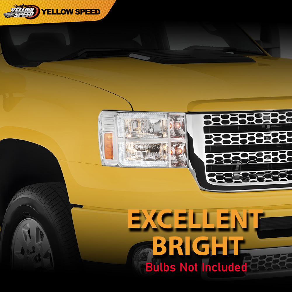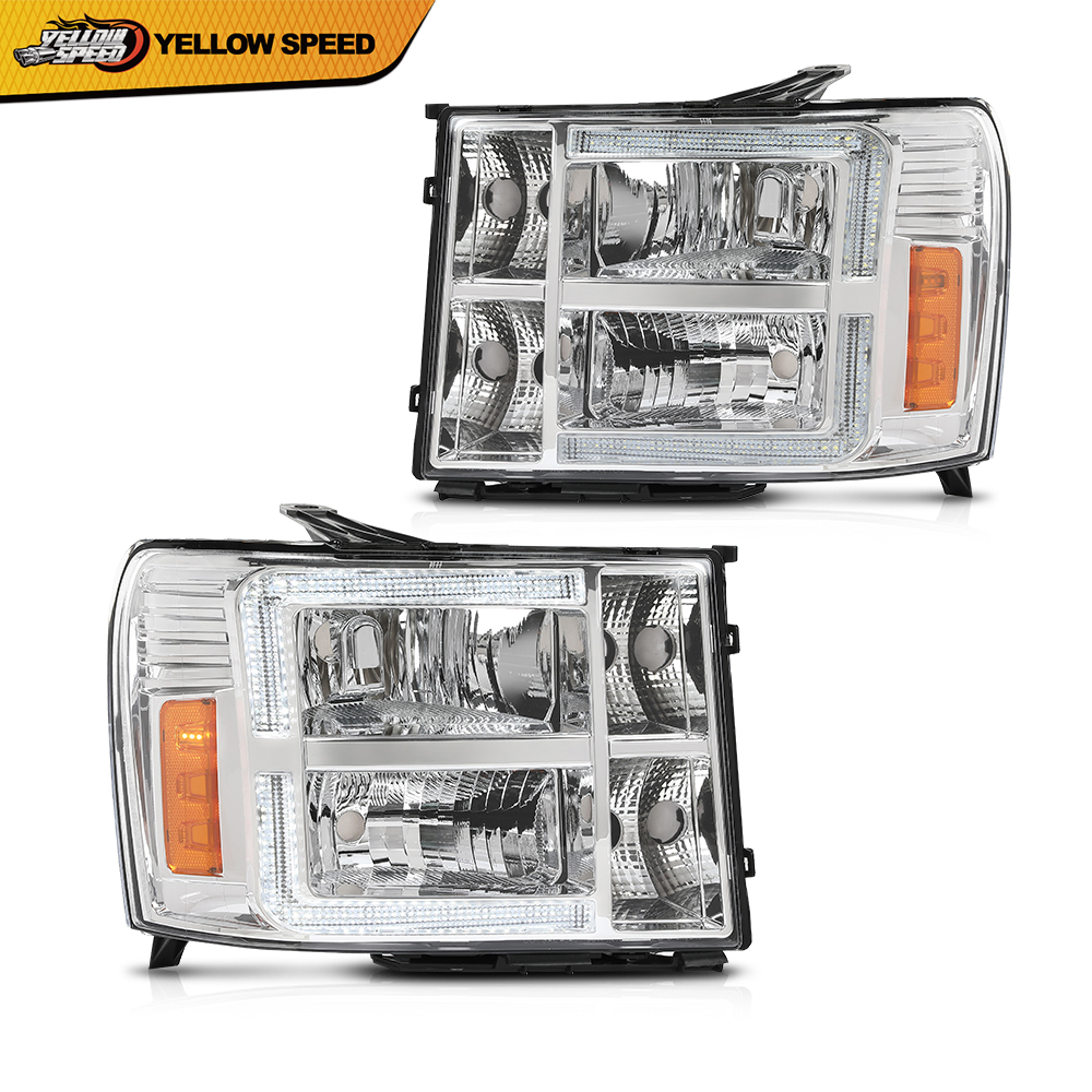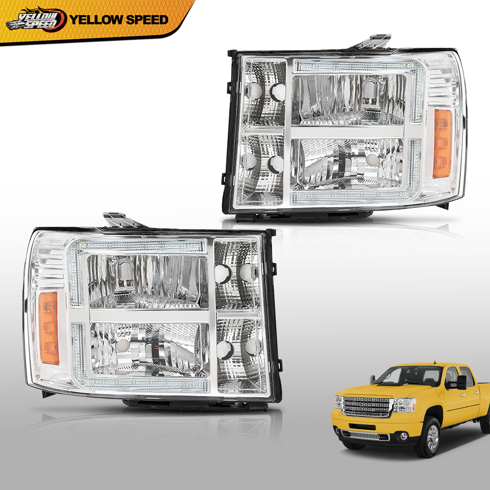 PRODUCTClear/Chrome LED DRL Headlights Fit For 2007-2013 GMC Sierra 1500 2500HD 3500HD
