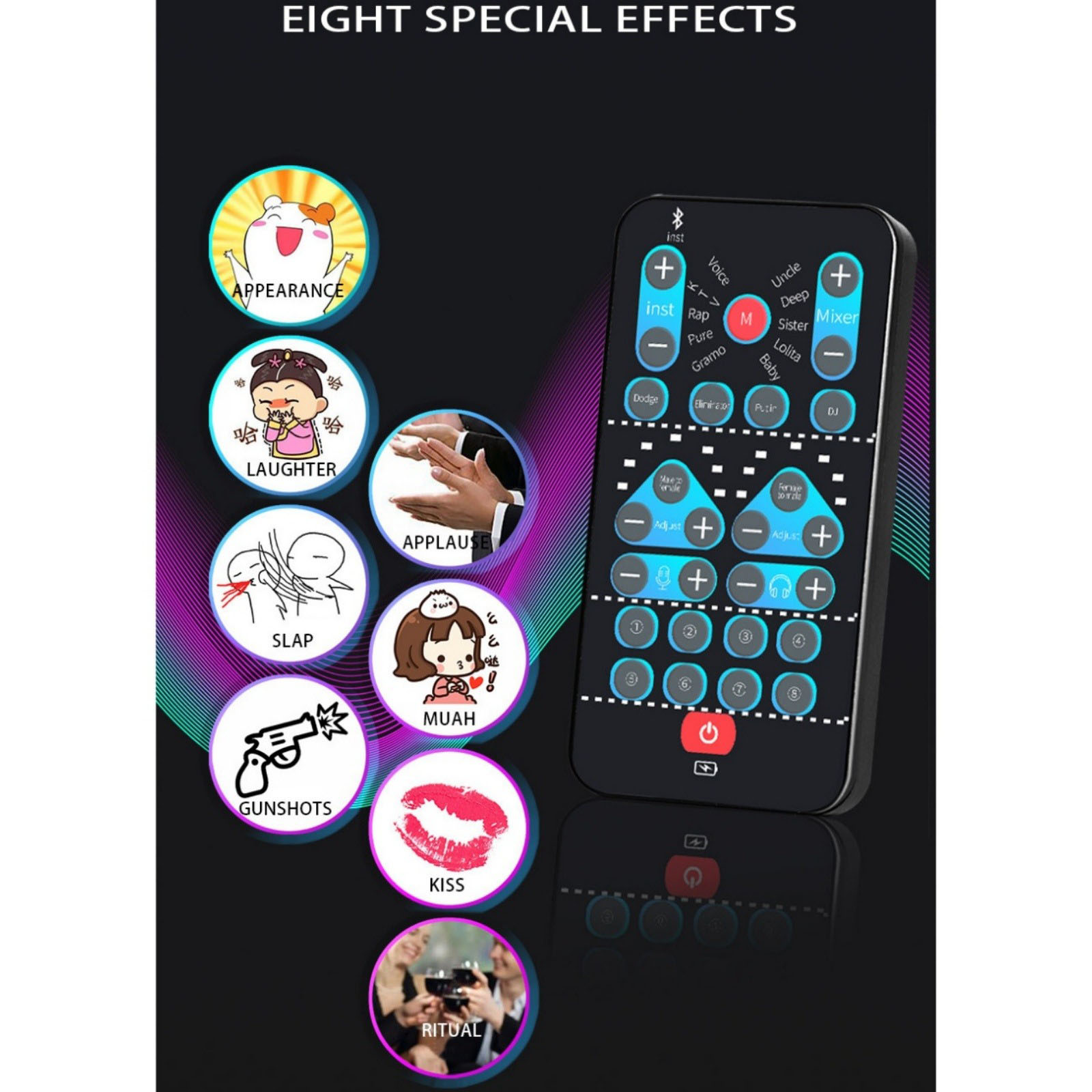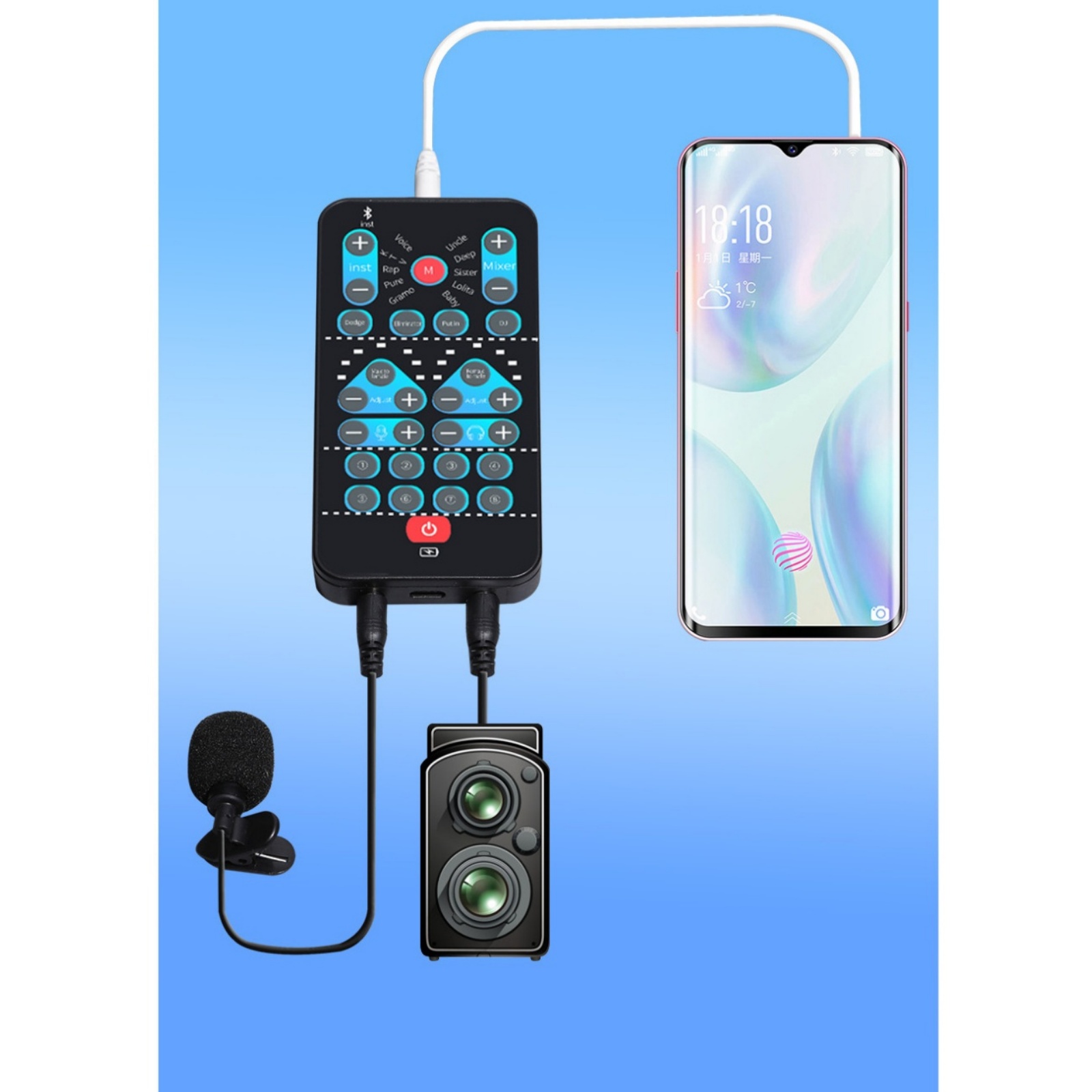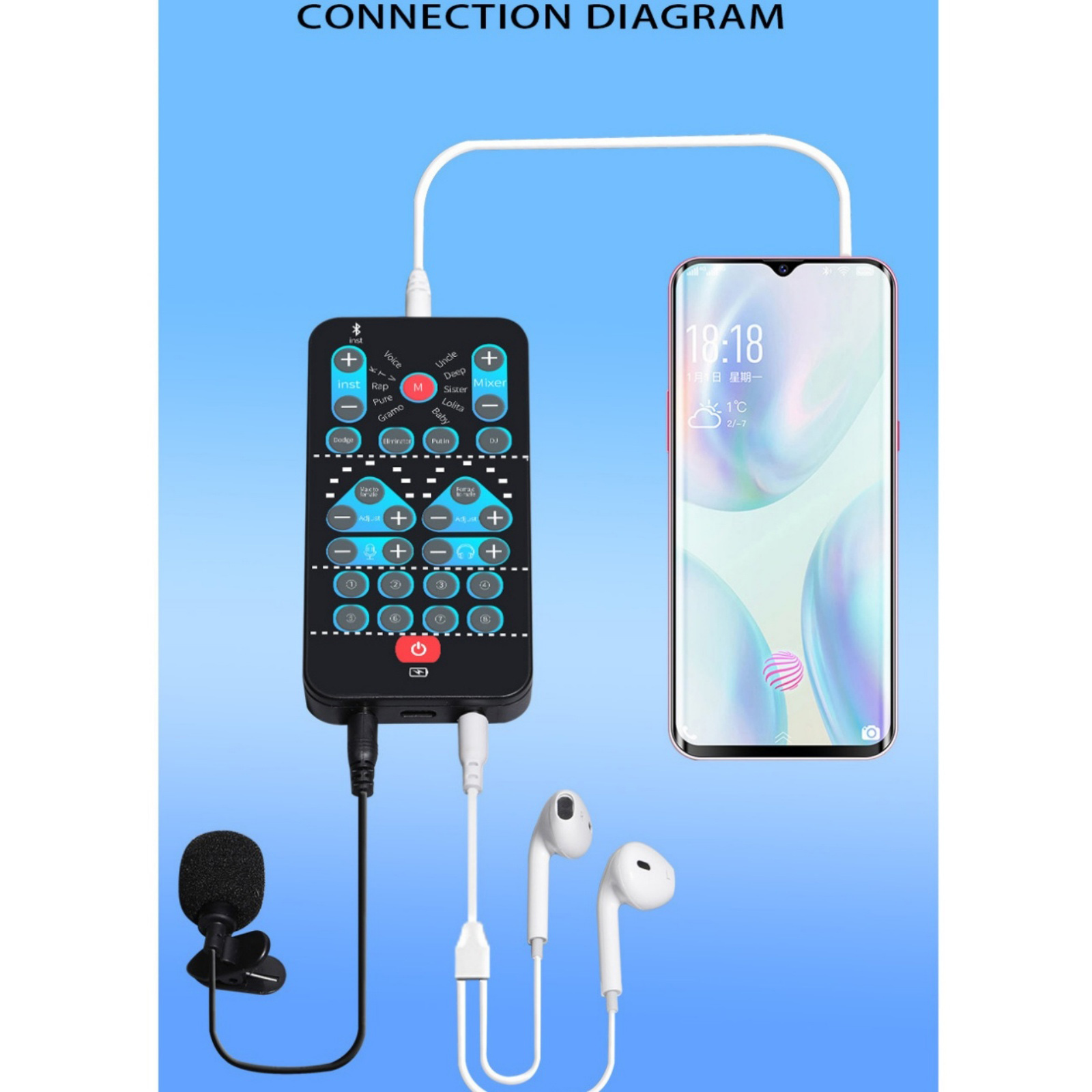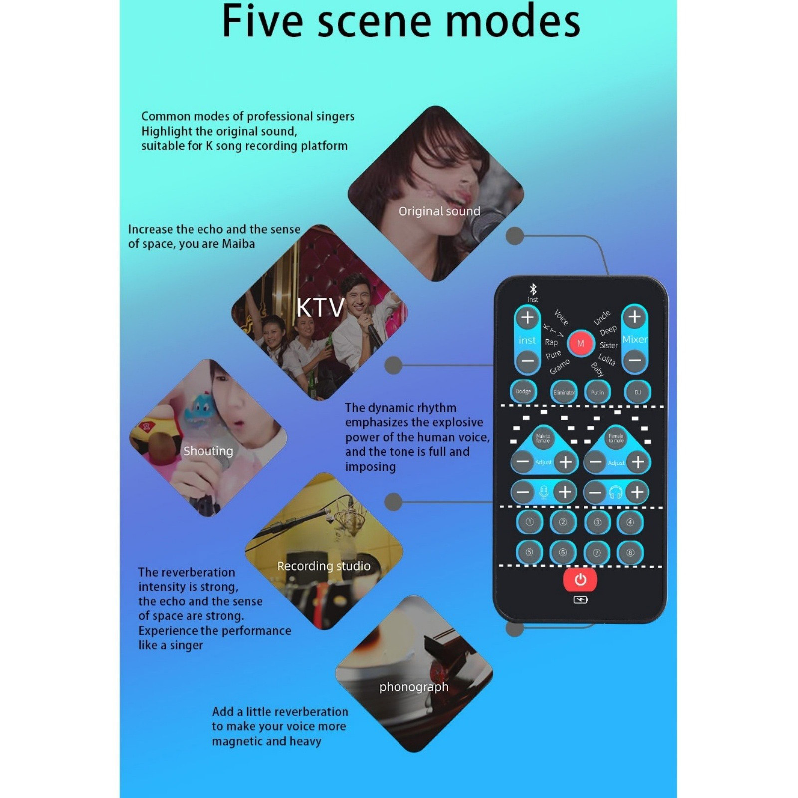 Functions: The external sound card has the ability to beautify sound, change sound, karaoke function and fine tuning function. You can use the fine tuning button to adjust each sound and get more different sound effects.