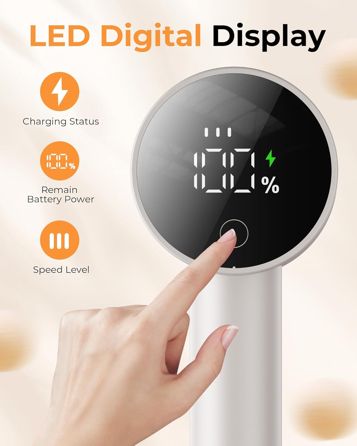 Digital LED Display-- Stay in control with our intuitive digital LED display. Easily monitor the battery level and speed setting,ensuring you always have the power you need for your fabric Shaver; Long last working time,2600mAh battery,2 hours quily charging,work up to for 3.5 - 4.5 hours