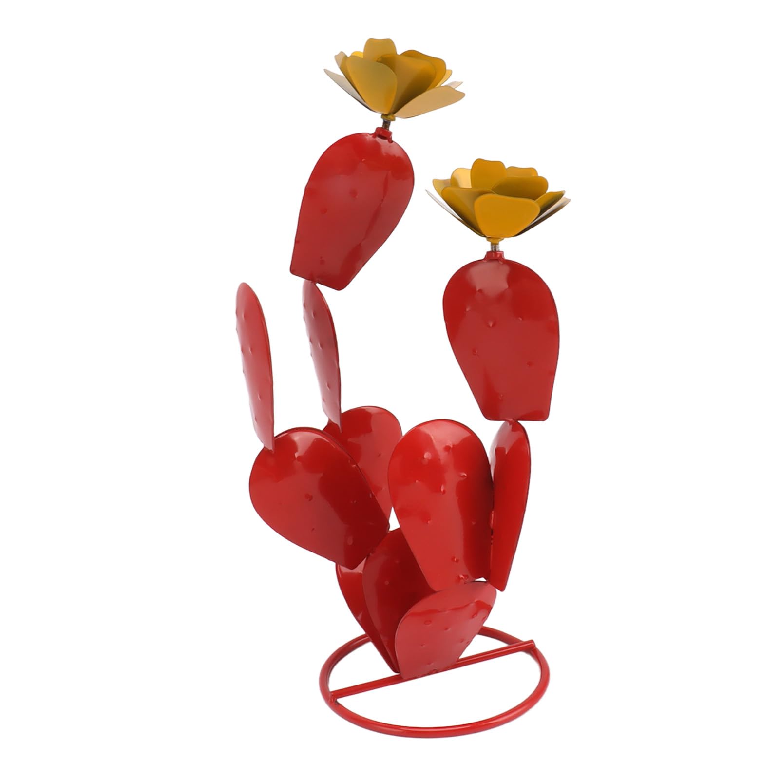 Topyond Metal Cactus Yard Art, Prickly Pear with Flowers, Outdoor Red