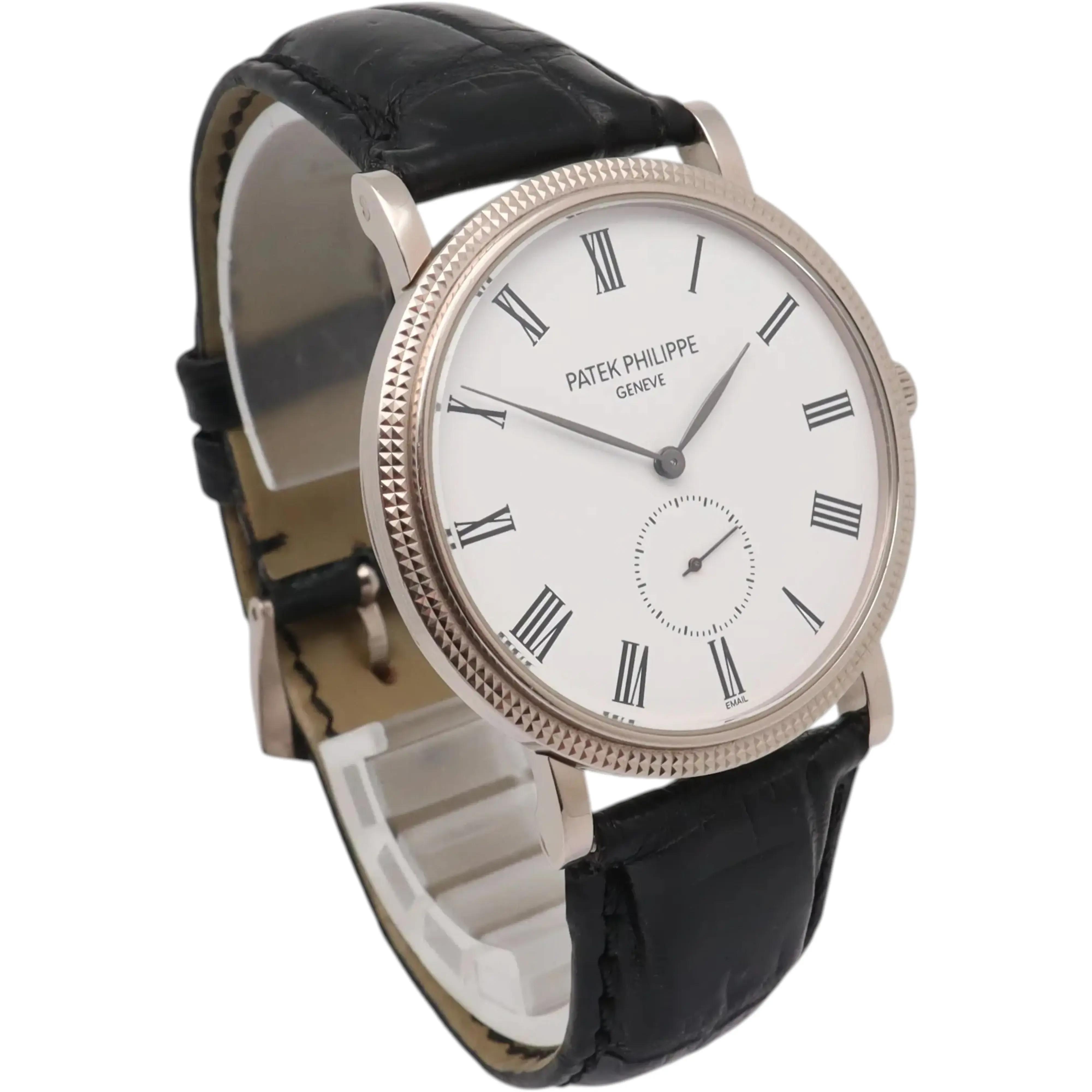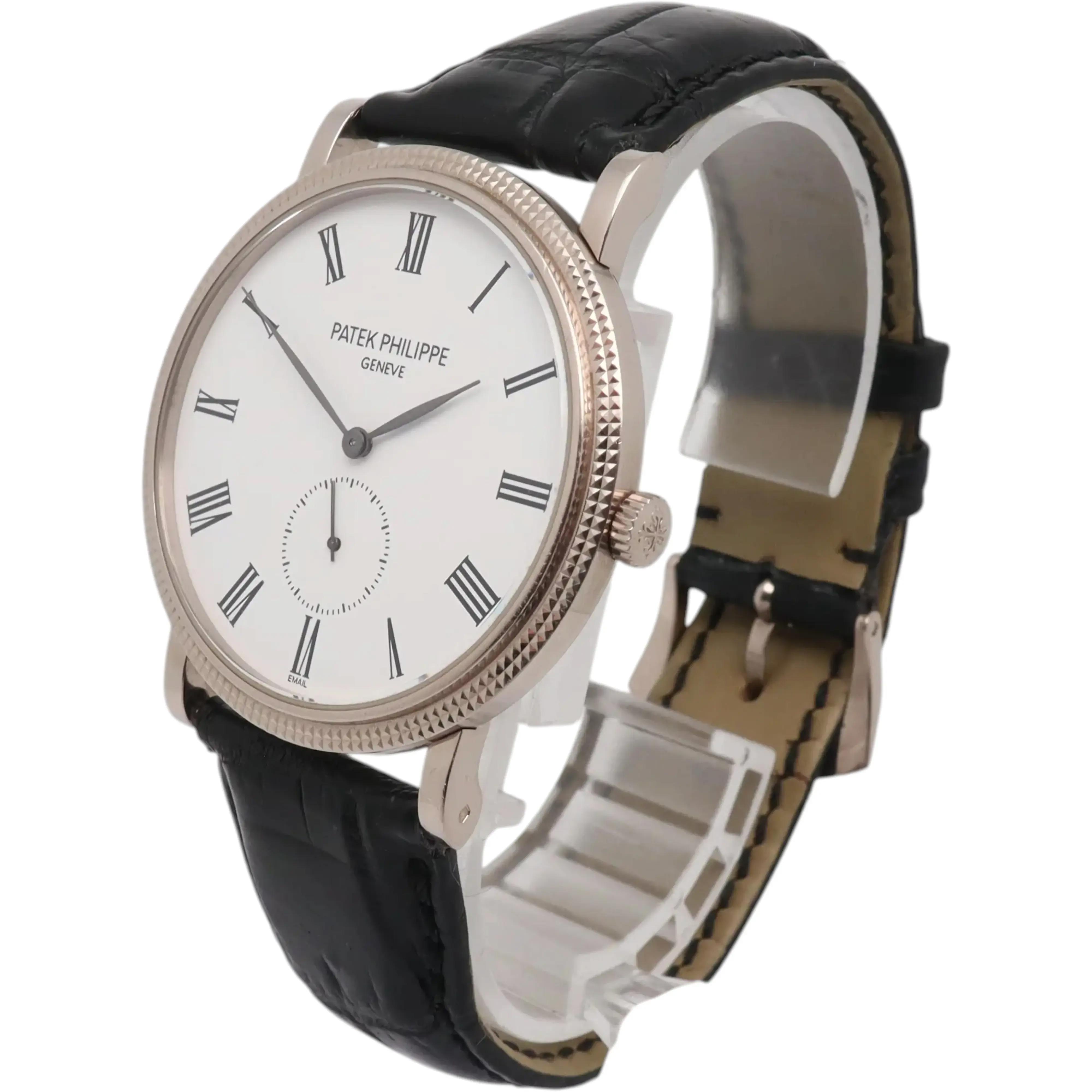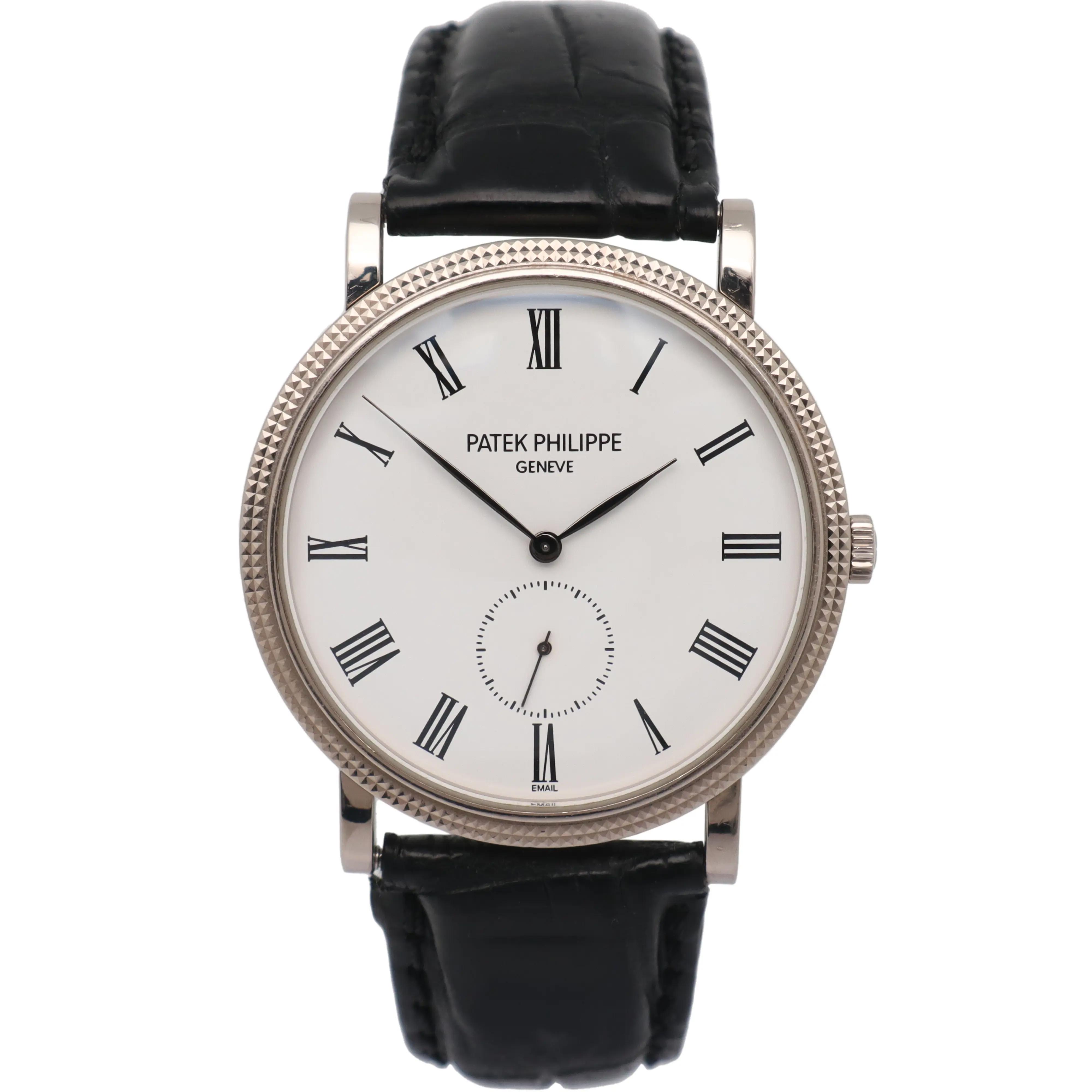 Patek Philippe Calatrava 36mm 18k White Gold Roman Enamel Dial Watch 5116g-001