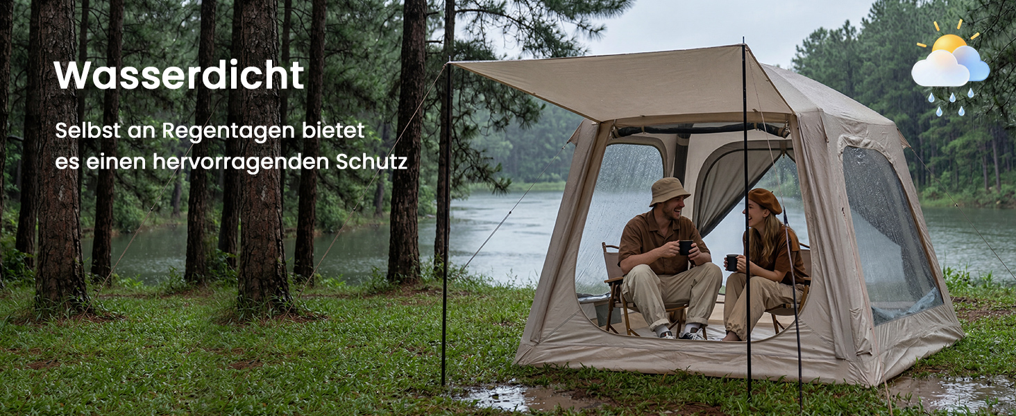 【Allwetterschutz und Belüftung】Unsere Zelte haben 4 Fenster mit Maschendrahtgitter, die für zusätzliche Belüftung sorgen, und feinmaschige Gitter, die Mücken fernhalten. Die Sie bei Sturm trocken und bei Hitze kühl halten.