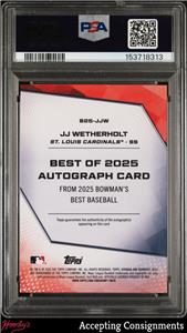 2025 Bowman's Best of '25 Blue Refractor JJ Wetherholt Rookie AUTO /150 PSA 10
