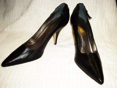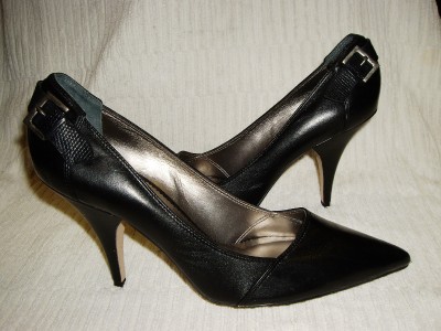 Pre-Owned (worn 1-2X)Nicole Miller N.Y. Black Leather Classic Pumps Heels~Made in Brazil 3 3/4" Heel