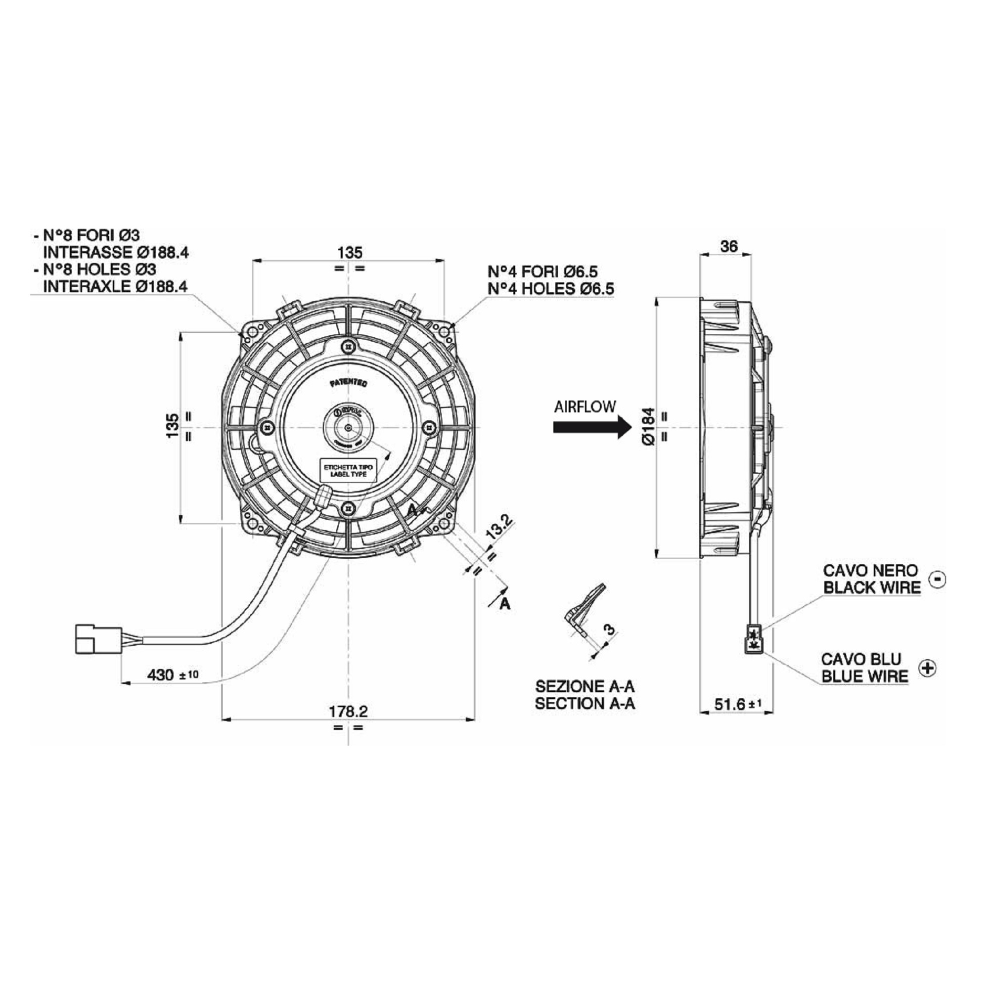 Spal Universal 12V Electric Cooling Fan - 6.5'' (184mm) Pull - (VA22-AP11/C-50A)