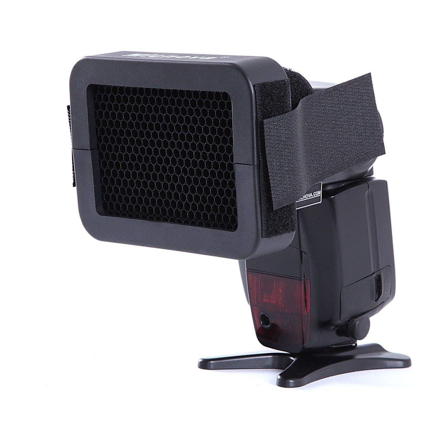 The Movo Honeycomb Grid for Portable Flashes attaches to your portable flash and dramatically narrows the beam of light that's put out by your shoe-mount or handle-mount flash. The effect is a small circle of light, with the size depending on flash-to-subject distance. The grid attaches to your flash with the included touch-tab fasteners.