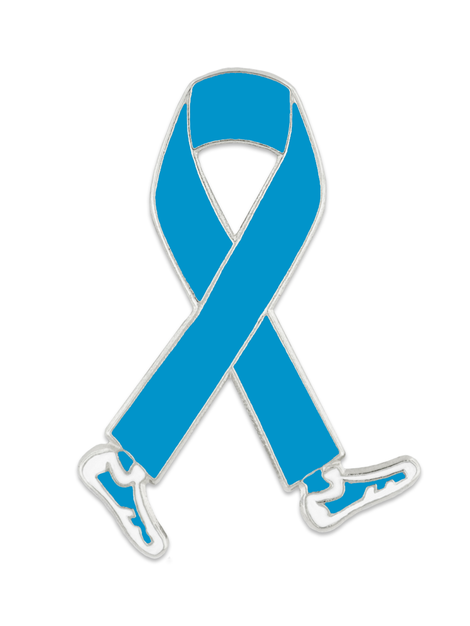 Our Walking Light Blue Ribbon Lapel Pin is perfect to bring attention to awareness walks and fundraisers for thyroid cancer, prostate cancer, pro-choice, men's health, scleroderma, and other causes. Nickel plated, die struck with light blue enamel color and "feet" to symbolize the efforts and support given to your cause. This is perfect to give as an inspirational gift! Each pin includes a clutch back and is individually poly bagged.