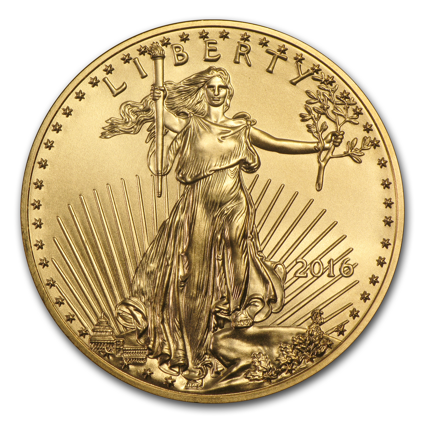 - Obverse: Adapted from Augustus Saint-Gaudens famed 1907 Gold Double Eagle design, which features Lady Liberty walking confidently against the suns rays.