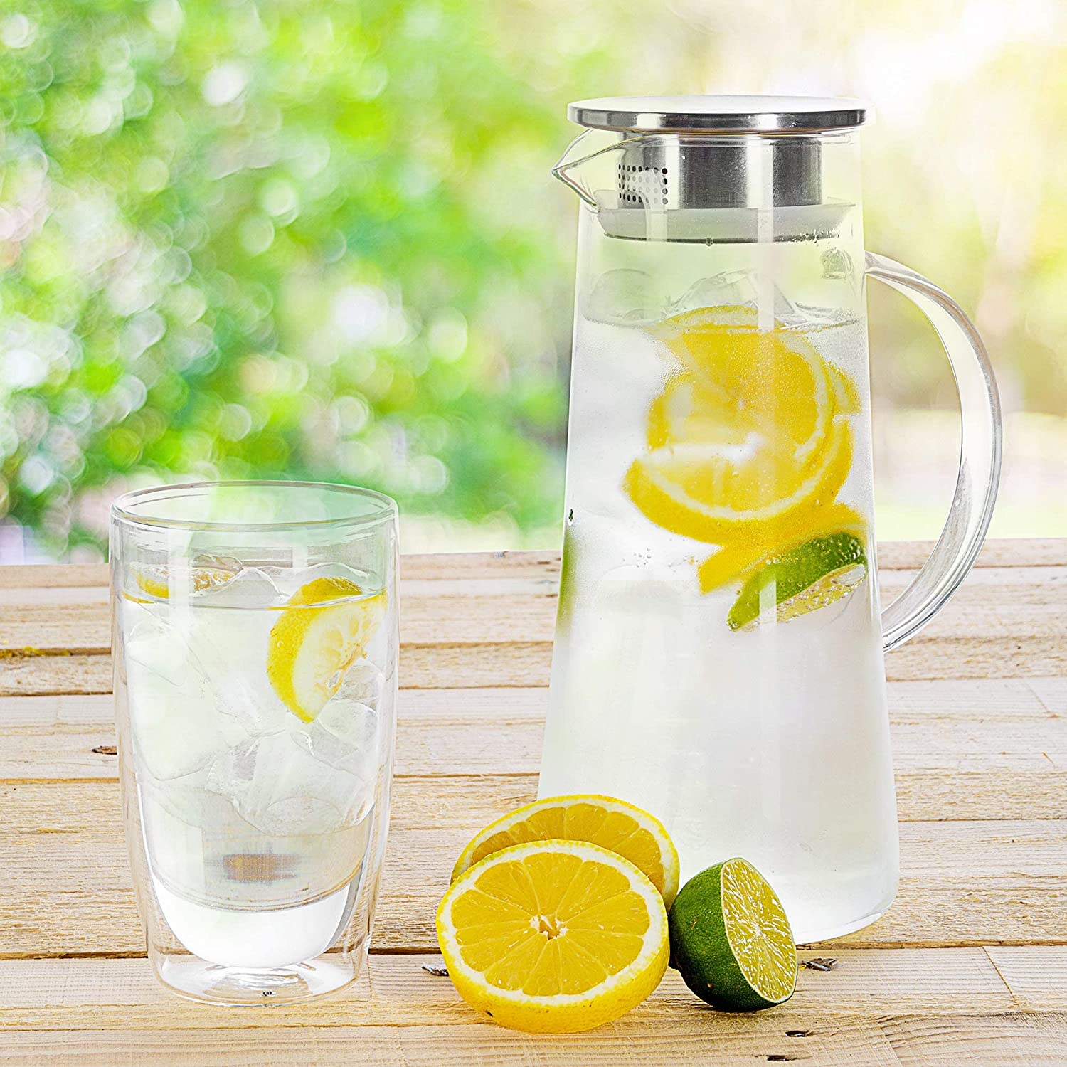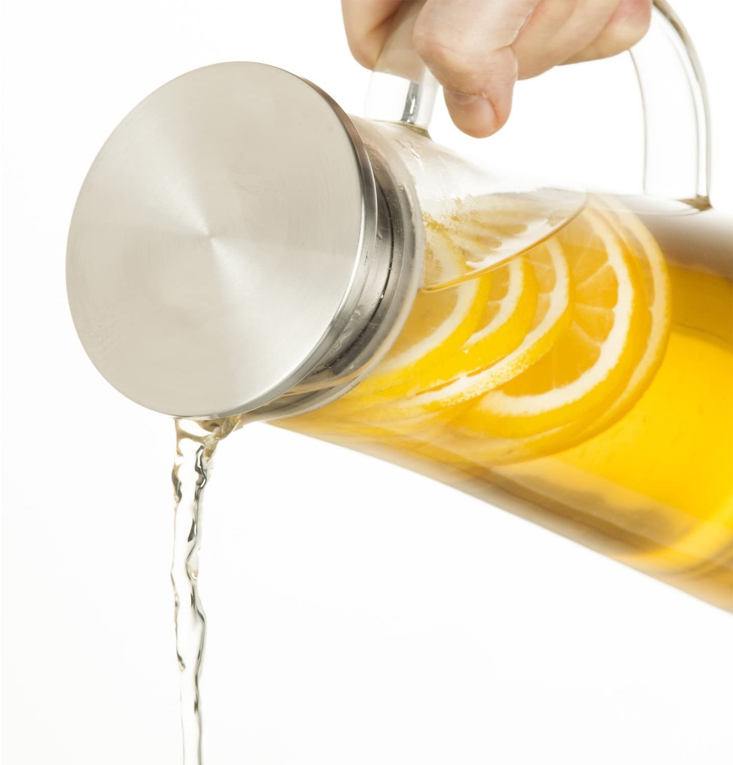 Eleganter und zeitloser Wasserkrug aus hitzebeständigem und kratzfestem Borosilikatglas. Hervorragend geeignet um Eistee zu verköstigen: Der Filter aus Edelstahl hält beim Ausgießen zeitgleich Zitronen-, Orangenscheiben, Eiswürfel und ähnliches zurück. Zusätzlich kann in den Filter noch Aroma mittels beispielsweise Zitronenschalen, Kräutern wie Minze, oder Fruchtstücken eingebracht werden. Dank der leichten Reinigungsmöglichkeiten und spülmaschineneignung ist die Kanne der tägliche Begleiter in der Küche.