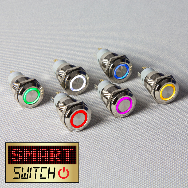 SmartSwitch 18mm/16mm Illuminated Round Halo LED Switch - Multiple Colours - ALL TYPES