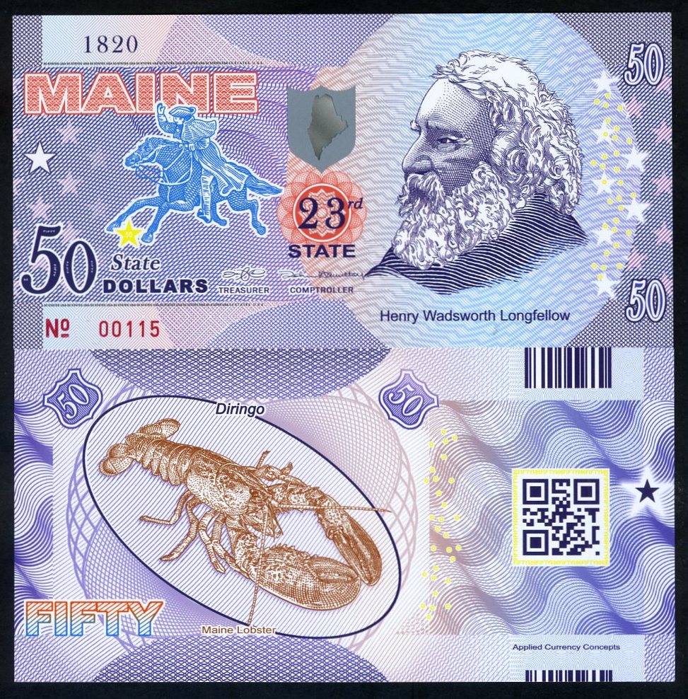 USA States, Maine, $50, Polymer, ND (2017), UNC Henry Longfellow, Lobster