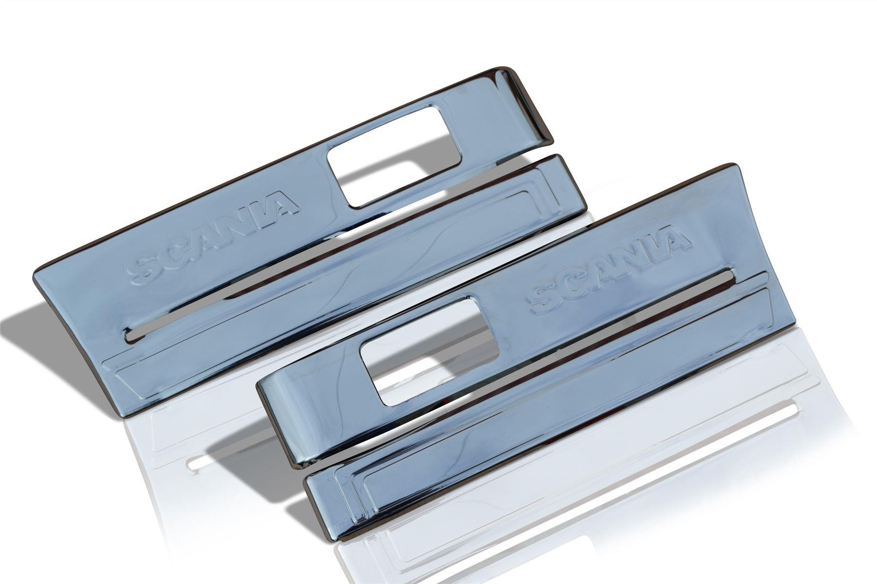 Pair of high quality Stainless Steel Side Steps Indicator Surround - Type C for Scania 4 / R / P / G / 6 Series. This top of the range Trim will have your truck looking top spec at a fraction of the cost of the genuine items but with the same high quality.