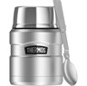The Thermos 16 oz. Stainless King Vacuum Insulated Food Jar is designed with a wide mouth opening that is easy to fill, easy to eat from and easy to clean. The Vacuum Insulation technology keeps contents hot for up to 9 hours and cold for up to 14 hours. As a bonus feature, this food jar comes with a foldable stainless steel spoon that fits right into the lids, eliminating the need to pack separate utensils.